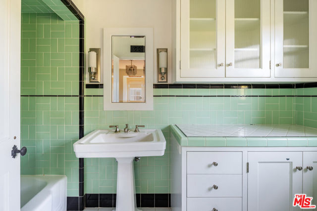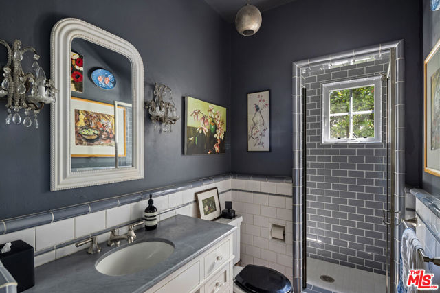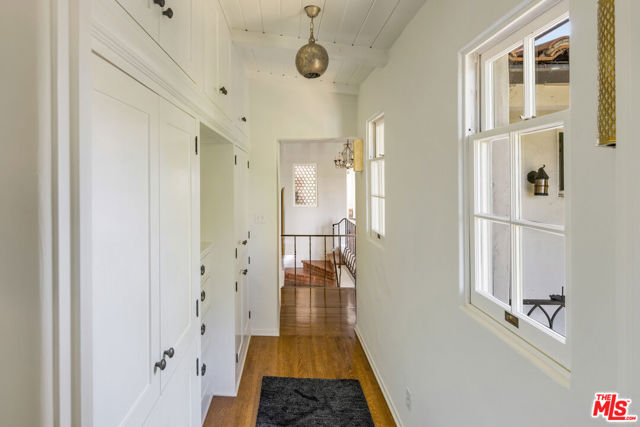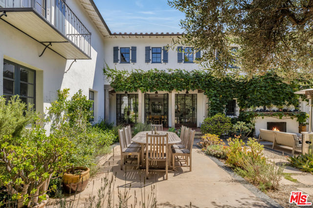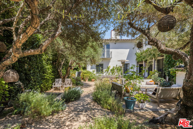 Tucked away at the end of a quiet cul-de-sac off of picturesque South Carmelina, behind tall walls and gates, lies this extensively restored, remodeled and expanded, stately 1930 Spanish. Done by current owner with great taste, quality & sensitivity to the magnificent original architecture with breathtaking gardens, lovely courtyard entry with outdoor fireplace, expansive flat yard, great privacy and exquisite detailing throughout. Inviting entry with original iron stair leads to formal living room with fireplace, inviting family room and fabulous cook's kitchen with farm table - all of which open through French doors to covered and open patios, expansive lawn, gardens, pool and spa. Cozy formal dining room, two separate offices with built-ins, maid's & bath, laundry and direct-access private garage complete the sensible first level plan. Upstairs there are five bedrooms, all with en-suite baths, including a fantastic primary suite with separate sitting room with fireplace, lavish bath and two furniture-grade closets. All the signature elements of the period can be found throughout including thick plaster walls, beamed ceilings, hand painted tiles, original hardware & fixtures, ironwork, stained glass, paneled doors, and hardwood & Saltillo tiled floors. Very special offering filled with romance and charm on large lot with resort-like setting in one of Westside's most desirable locations - close to town and the Sunday Brentwood Farmer's Market. Available early April 2026.
