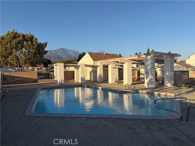 Located in the highly desirable Mountain Villas community, this freshly updated single-story condominium offers a well-designed floor plan and comfortable living throughout. The inviting living room features a fireplace and sliding glass doors that open to a private, cottage-style patio — ideal for outdoor dining, entertaining, or quiet relaxation. Recent updates provide a clean, move-in ready interior (fresh paint, etc). This home offers two spacious bedrooms and two bathrooms, thoughtfully arranged to provide both functionality and privacy. An attached two-car garage provides direct access and additional storage space. The Mountain Villas HOA includes water, trash, pool, and spa amenities, offering both convenience and value. Ideally located with close proximity to the 10 and 210 freeways, this property provides easy access to shopping, dining, schools, and everyday services.