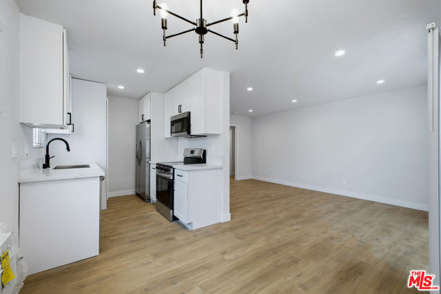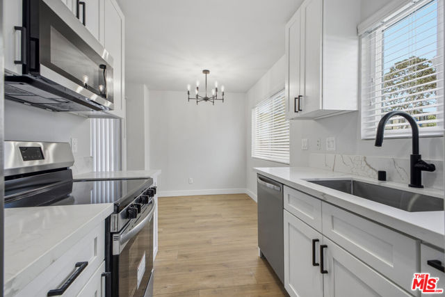 Beautifully renovated downstairs 2-bedroom, 2-bathroom apartment featuring modern upgrades, stylish finishes, and a bright open-concept layout. This ground-level unit offers convenient access with no stairs, making move-in easy and everyday living comfortable.This move-in ready home features durable wood-look flooring throughout, recessed lighting, and a clean contemporary design that feels fresh and inviting.The stunning modern kitchen is equipped with stainless steel appliances including stove, refrigerator, dishwasher, and microwave perfect for everyday living. White shaker cabinets, sleek black hardware, and quartz-style countertops create a timeless, upscale look with plenty of storage space.Both bathrooms have been fully updated with contemporary finishes, featuring:Shower/tub combination with sliding glass doorsModern matte black fixturesWood-tone vanity with clean white countertopSpacious bedrooms include large closets with mirrored sliding doors, adding natural light and functional storage. The open living and dining area offers great natural light and flexible space ideal for entertaining or relaxing at home.