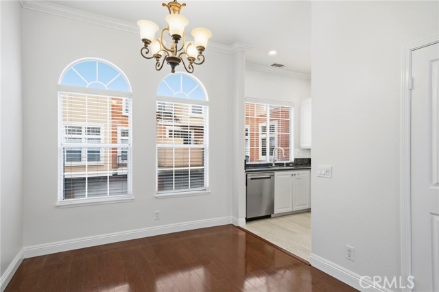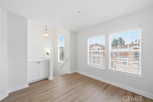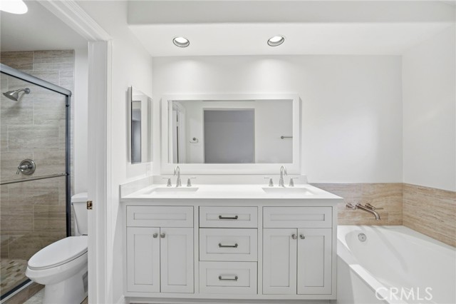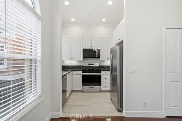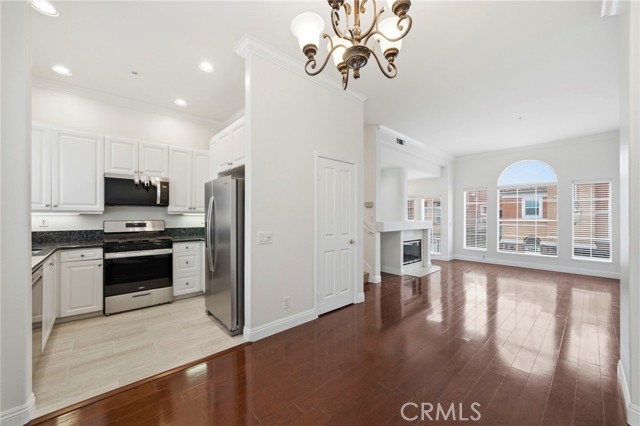 FULLY REMODELED CONDO IN PRESTIGIOUS CORTE BELLA GATED COMMUNITY OF WESTPARK! No one has lived in this since the remodel! One bedroom plus additional den area - perfect for office or playroom. All kitchen appliances are brand new: refrigerator, dishwasher, microwave, oven stovetop. Some other features: wood floors throughout, granite countertop and new quartz counters at master bathroom, marble fireplace with gas logs, new blinds, paneled doors, fresh new paint, stainless steel appliances with European white cabinets in kitchen. French doors leading to balcony off spacious living room with lovely windows, crown moldings, high ceilings, Large Master bedroom includes walk-in closet, a New Roman tub & separate walk-in shower, and dual vanity basins. NO ONE ABOVE OR BELOW. DIRECT ACCESS FROM GARAGE. Close to Bill Barber Park; San Remo Park, shopping center and Excellent Award-Winning Irvine Unified Schools. New Stainless-steel side by side refrigerator included.