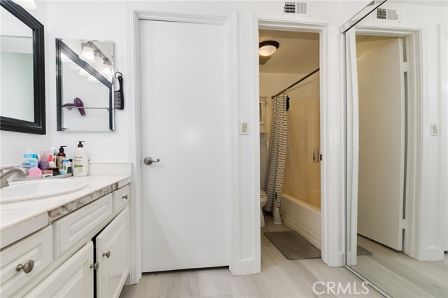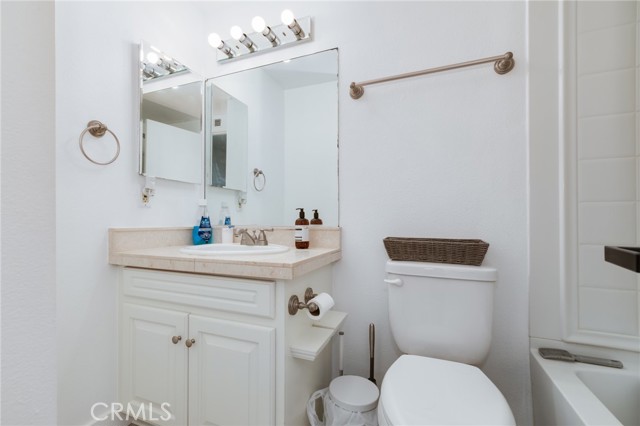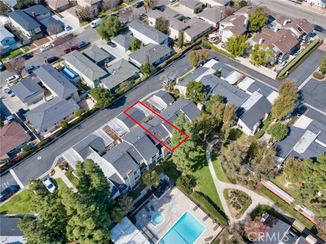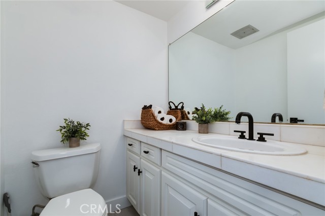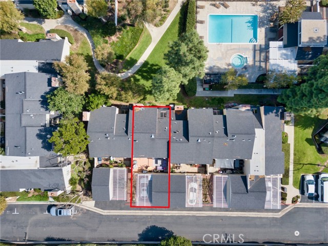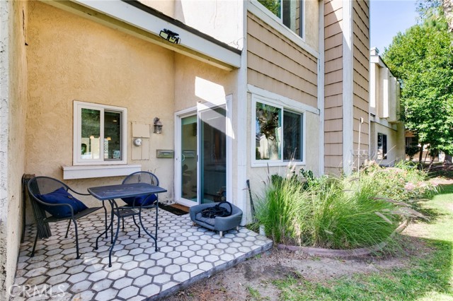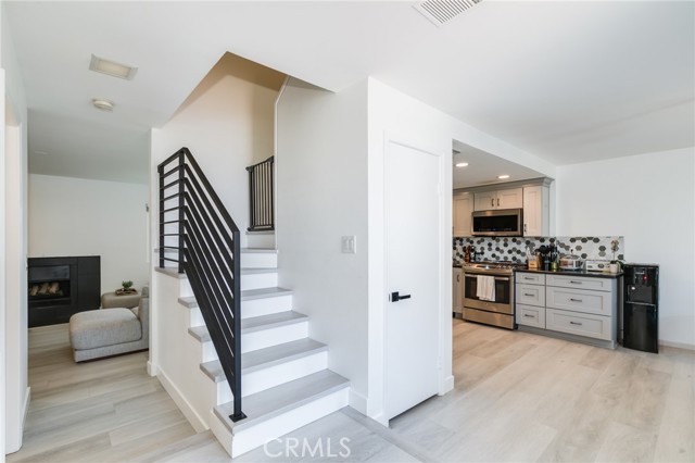 Beautiful two-story home featuring 3 bedrooms and 2.5 bathrooms in the desirable Arroyo Santiago community in Orange. All bedrooms are situated upstairs, offering added privacy and comfort. The bright, open kitchen showcases granite countertops, a stylish backsplash, stainless steel sink, dishwasher, microwave, refrigerator, stove range, and self-closing cabinetry. Large windows fill the space with natural light and provide peaceful views of the lush greenbelt. The kitchen flows effortlessly into the dining area and spacious family room.The inviting family room offers a cozy fireplace and sliding glass doors that lead to the back patio, where you can enjoy community pool views. The home has been upgraded with luxury vinyl plank flooring throughout, along with a modern staircase railing.The primary suite features LVP flooring, a walk-in closet plus an additional sliding-door closet, electric shades, and an en-suite bathroom with updated vanity fixtures and a private toilet area. The second bedroom includes built-in bookshelves and motorized shades on dual-pane windows. The third bedroom offers a sliding closet and window shades. A hallway bathroom with updated vanity fixtures and a shower-over-tub serves the secondary bedrooms. Additional features include a first-floor laundry room, Tesla charger in the garage, one-car garage with an additional carport space, and a private, nicely paved front patio with fencing. Conveniently located near freeways, shopping, and schools. This move-in ready home offers comfort, style, and an excellent location.