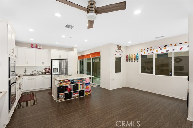 Modern 3 Bed/3 Bath townhome with downstairs bedroom, spacious loft, two decks, solar panels, 2 car garage and EV charger. Built in 2017, this 2,200 sq ft home offers an open layout, vinyl flooring on the first floor and loft, abundant natural light, and multiple outdoor spaces. The downstairs bedroom with full bath is ideal for guests, in-laws, or a home office. Upstairs features a large loft with its own deck, plus a primary suite with walk-in closet, large bath, and a second private deck. Solar panels reduce electricity costs, and the attached 2-car garage includes an EV charging station. Minutes to I-5 and I-405, shopping centers, and the upcoming walkable Canopy center. Zoned for top IUSD schools: Cadence Park (K-8) and Portola High. Great Park HOA amenities include pools, parks, sports courts, playgrounds, and community spaces.