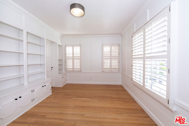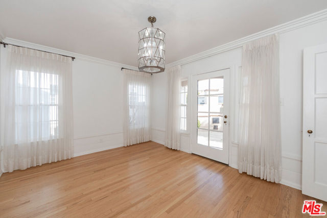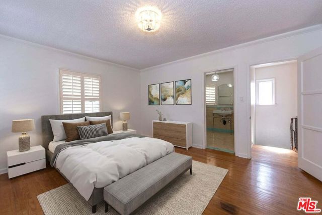 Welcome to this beautiful 2-story home nestled in the desirable neighborhood of Leimert Park. This 2,151 square foot home boasts 3 bedrooms, 3 bathrooms, and an office/library complete with built-in bookshelves, perfect for those working or studying from home. This home offers a perfect blend of charm and comfort. The step-down living room is spacious and features a stone fireplace and elegant crown moldings, creating a warm and inviting atmosphere. Step up to the formal dining room, adorned with a glass paned door, providing a seamless transition to the backyard patio, creating an ideal space for entertaining guests. The kitchen boasts a perfect blend of style and functionality. The white upper cabinets and dark gray lower cabinets create a modern and sleek look, complemented by the stainless-steel sink and appliances. With a double oven and recessed lights, this kitchen is perfect for hosting dinner parties or simply preparing a delicious meal. Off of the kitchen is a separate, quaint breakfast nook with shutters and insets providing a perfect spot for enjoying morning coffee or casual meals. Upstairs, you'll find all the bedrooms, ensuring privacy and tranquility. The primary bedroom's en-suite is open with a separate tub and shower. One of the bedrooms offers access to a rooftop deck, where you can relax and bask in the sun. This home features beautiful hardwood floors throughout, adding a touch of elegance to every room. The backyard patio is the complete with a brick pit, and is an ideal space for enjoying outdoor relaxation. The detached 2-car garage provides ample parking and additional storage. The washer and dryer are housed in a separate room off the garage. Situated on a tree-lined street, this home is conveniently located close to Culver City, LAX, Beverly Hills & USC. Metro rail transportation, offers easy access to Downtown Los Angeles, Santa Monica and to LAX. Don't miss the opportunity to live in this Leimert Park gem. Come be the newest neighbor! (Some photos have been virtually staged)