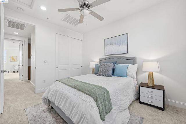 This highly sought-after luxury townhouse blends modern elegance, comfort, and everyday convenience in a beautifully designed open-concept floor plan. Built just 11 years ago, this spacious 2,114 sq. ft. home offers 4 beds, 3.5 baths, a 2-car garage, and low HOA dues. he main living area showcases soaring ceilings and an expansive living and dining space filled with natural light. The gourmet kitchen is a true centerpiece, featuring a large island, quartz countertops, stainless steel appliances, a gas cooktop, and seamless access great room and a covered balcony—ideal for year-round enjoyment and entertaining. The primary suite offers a private retreat with an en-suite bath and generous walk-in closet. A desirable ground-floor bedroom with a full attached bath provides flexibility for guests, multigenerational living, or a home office. Additional highlights include recessed lighting, a dedicated laundry room, and an energy-efficient tankless water heater. Ideally located near Newpark Mall, with abundant shopping and dining options just moments away. Enjoy access to top-rated schools, convenient freeway connections to I-880, CA-84, and I-680, and proximity to major employers such as Tesla, Meta, Kaiser and Costco -Perfect combination of luxury, location, and lifestyle.