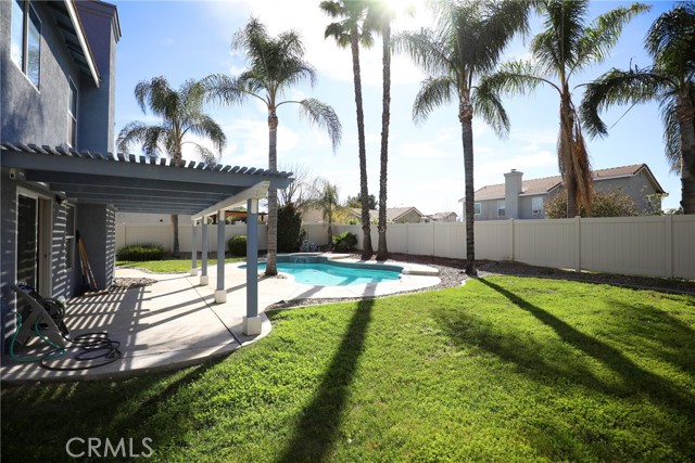 Welcome to Murrieta Pool home with 4 bedrooms, 2.5 Baths , 2 car garages. Home locates in Prime area near High School, freeway and shopping. Home has the separate living room and family room. Kitchen with granite counter top, stainless steel appliances, Oak cabinets. Windows cover with dark wood shutter throughout. 4 bedrooms with good size upstairs and wood floor throughout. Back yard is another entertainment for family gathering with pool and spa. Award winning Murrieta school district.