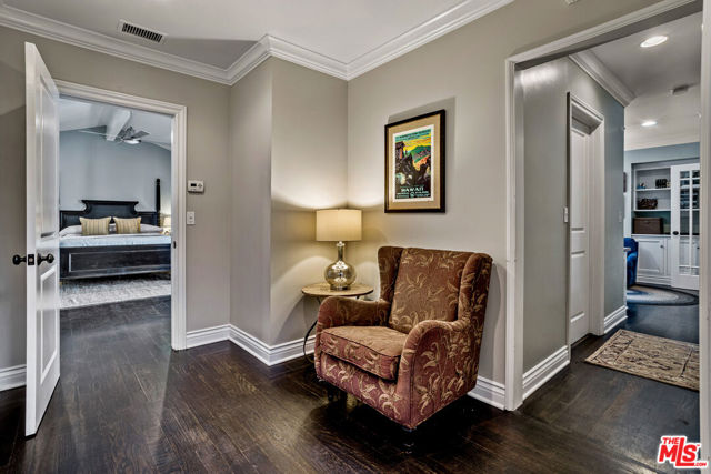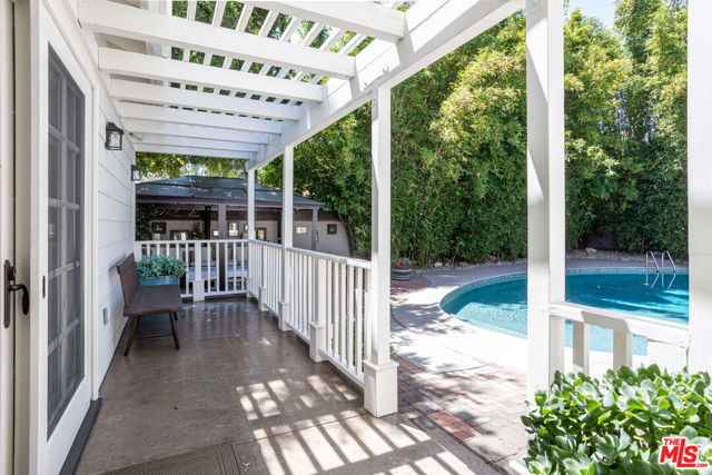 Tucked at the end of a quiet cul de sac in the sought after Landale Square neighborhood, this spacious gated compound offers a wonderful sense of privacy and calm while still being moments from the best of Studio City and Valley Village. Campbell Hall School, Gelson's Market, and the many restaurants and boutiques along Ventura Boulevard are all just a short distance away.Set on approximately one third of an acre, the property features 4 bedrooms, 5 baths, and nearly 3900 square feet of living space surrounded by mature landscaping, lush greenery, and a thriving fruit orchard with eight varieties of citrus trees on park-like grounds. A generous seven car motor court provides plenty of space for guests and everyday convenience.Inside, an open and airy floor plan oozes with charm and is filled with natural light, enhanced by deep skylights that create a bright and welcoming atmosphere throughout the home. Rich hardwood floors, crown molding, custom cabinetry, and thoughtful architectural details add warmth and character, while three wood burning fireplaces bring a cozy and inviting feel to the living spaces.The main level opens to several outdoor areas designed for easy indoor outdoor living. An oversized pool and expansive deck are perfect for entertaining or enjoying sunny afternoons, while the outdoor sitting area and cabana offer a peaceful place to relax and take in the surrounding gardens.Upstairs, a private guest suite offers wonderful comfort with its own full bathroom, a second washer and dryer, and a spacious balcony that feels like a quiet escape among the trees.Combining the feel of a private compound with easy access to Ventura Boulevard dining, shopping, top rated schools, and nearby transportation, this special property offers a rare balance of comfort, privacy, and convenience. Welcome to 4537 Agnes Avenue, a truly inviting place to call home.