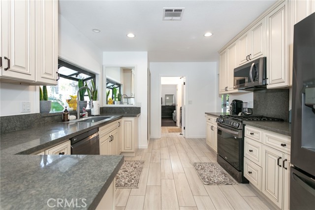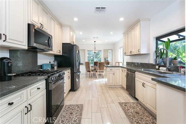 Tucked away in a serene setting, this fully furnished and beautifully updated 3-bedroom, 3-bathroom home offers nearly 2,200 sq. ft. of refined living space, seamlessly blending modern upgrades with traditional features and design. Step into an expansive, light-filled living room, where raised ceilings and skylights create a bright and airy ambiance. Just beyond, a separate family room provides the perfect retreat for relaxation or entertaining. The brand-new kitchen shines with sleek stainless steel LG appliances, custom cabinetry, and elegant finishes, while a breakfast eating area with counter seating makes for a welcoming space to gather. Additional upgrades include new hardwood and laminate flooring, updated electrical and plumbing, new recessed lighting, and a new central HVAC system for effortless comfort. Unwind by one of the home’s two cozy fireplaces, or retreat to spacious bedrooms with new windows framing picturesque outdoor views. A new laundry closet with side-by-side washer and dryer adds to the home’s convenience. Outside, escape to your own private sanctuary, where lush, tree-filled grounds and four distinct yard spaces—front, back, and both sides—offer a rare sense of peace and seclusion. Newly designed hardscape and landscaping, along with stately iron gates, set the stage for relaxing afternoons and effortless entertaining among vibrant fruit and flower trees. A true hidden gem, this home offers a perfect blend of modern comfort, abundant natural light, and exceptional outdoor space—all in a desirable Valley location.