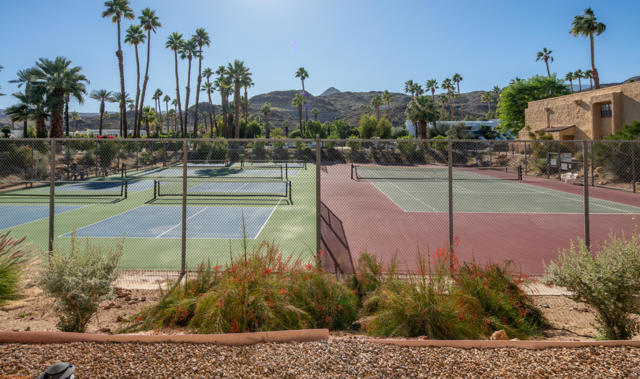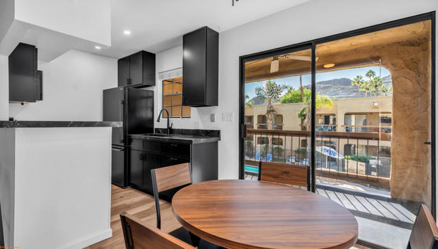 The perfect hideaway for your desert adventures! AVAILABLE FOR LONG-TERM 6-MONTH+ LEASE. This rare, upper-level two-bedroom, 1.25 bath, remodeled unit offers modern upgrades and effortless comfort throughout. Enjoy a brand-new kitchen with leather-finish granite countertops and all-new appliances, plus new vinyl plank flooring, and ceiling fans in every room. Bathrooms have been tastefully updated, and all electrical outlets and switches have been replaced. The freshly painted interior feels clean and inviting, and a new Samsung washer and dryer are included. The timeless floor plan provides a seamless indoor-outdoor flow from the living and dining areas to a private balcony with south-facing panoramic mountain views. The community surrounds you with lush lawns and mature grapefruit, lemon, and lime trees. Cool off in one of three pools, relax in four spas, or enjoy the tennis and pickleball courts. Close to shopping and dining - and just minutes from Downtown Palm Springs - this home is truly a must-see! Monthly rent includes water, basic cable and internet for added convenience. Tenant pays for electricity and gas. First month's rent and $1,950 deposit due prior to move-in. Sorry, no pets.