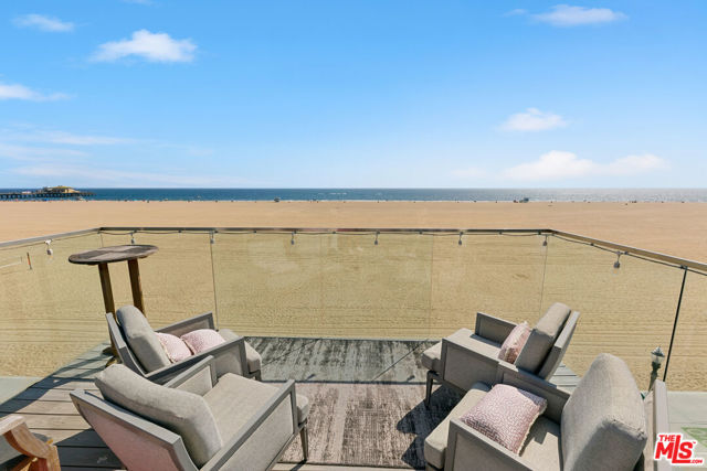 Widely known as the "Barbie House," this iconic oceanfront residence offers a rare opportunity to live directly on the sand along Santa Monica's prestigious Palisades Beach Road. With uninterrupted Pacific Ocean views from all three levels, the home blends bold architectural personality with effortless coastal living. Floor-to-ceiling glass captures sweeping whitewater views, the Santa Monica Pier, and spectacular sunsets, while private terraces on every level extend the living experience outdoors. A rooftop deck showcases panoramic coastline vistas, creating an extraordinary setting above the beach. The primary suite serves as a serene retreat with its own ocean-facing terrace and spa-inspired bath. Additional en-suite bedrooms offer comfort and privacy, while the open great room and modern kitchen are designed for relaxed beachfront living and entertaining. Fully furnished and move-in ready, this is a unique opportunity to lease one of Santa Monica's most recognizable and talked-about beachfront homes. Available for a 13+ month lease.