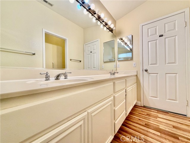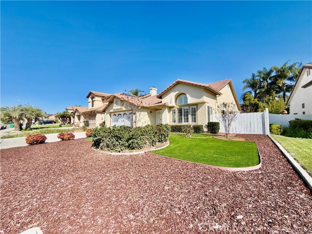 Welcome home to this lovely 3 bedroom, 2 bathroom home featuring both a living room and family room, plus an extensive covered patio and spacious backyard. As you approach, enjoy the low maintenance landscape and attractive curb appeal highlighted by turf. Upon entering the home, you will first notice the utility closet and the spacious living room area, which can also function as a dining space. Plenty of shutters are present, allowing for an abundance of natural light, along with updated flooring that complements the space nicely. Continuing through the home, you will find the open kitchen and family room. The kitchen offers tile flooring, breakfast bar seating, dark wood cabinetry, and elegant countertops. Heading down the hall, you will first come across the restroom serving the secondary bedrooms, complete with a shower and tub combo and white cabinetry. The two bedrooms before the primary offer ample closet space, generous sizing, hard surface flooring, and tall ceilings. The primary suite features elevated ceilings, a walk-in closet, and direct access to the backyard. The en-suite restroom provides dual sinks, sleek white cabinetry, and a walk-in shower. Out back, you will find the great-sized covered patio and a vibrant green open area, perfect for relaxing or entertaining. The 2-car garage also includes extra storage cabinets for added convenience. An additional notable feature in this home is luxury hard surface flooring throughout the entirety of the home. Located in proximity to local schools, shopping, fine dining, freeway access for commutes, and so much more!!! Schedule your private showing today homes like this in Murrieta do not last long!
