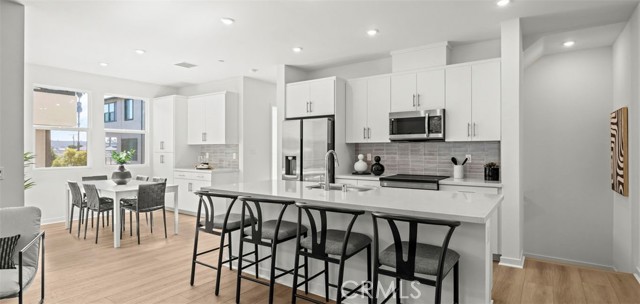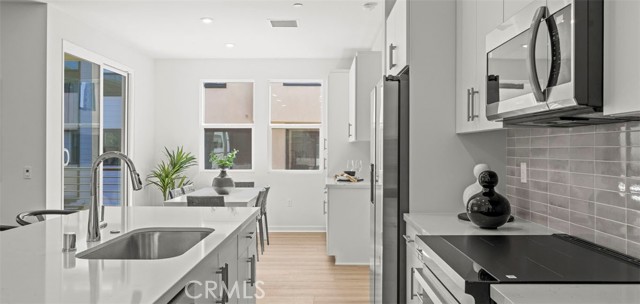 Experience the perfect combination and functionality in this impeccable , three story home in this stylish 3-bedroom, 2.5-bath home built in 2025, . Offering 1,413 sqft of thoughtfully designed space, this residence features a ground-level entry with direct access to a two-car garage. The second floor showcases an open-concept layout with a bright living area, modern kitchen, spacious dining space, powder room, and a private balcony perfect for relaxing or entertaining. All three bedrooms are located on the third floor, along with a conveniently placed laundry closet. Enjoy the benefits of modern upgrades, including solar panels, EV charging, and newer appliances: refrigerator, washer/dryer, and stainless-steel kitchen appliances. Ideally situated near top Orange County destinations like Disneyland, Knot berry farm, professional offices, and new plaza include several stores and grocery market. This new building is equipped with solar, and it will be cost saving if driving EV vehicle and low cost electrical bill.