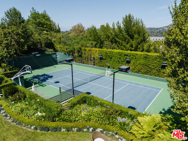 Located within the prestigious guard-gated enclave of North Beverly Park, this grand estate sits on approximately 2.2 acres of private, manicured grounds and offers the ultimate in luxury living and entertaining. Spanning nearly 17,000 square feet, the residence features 7 bedrooms and 10 bathrooms with expansive interiors designed for both elegant gatherings and everyday comfort. A dramatic two-story foyer with sweeping staircase sets the tone for the home's timeless architecture and scale. Formal living and dining rooms, a gourmet chef's kitchen, wine cellar, and a state-of-the-art theater with concession area create an exceptional environment for entertaining. The luxurious primary suite serves as a private retreat, featuring dual spa-like bathrooms, sauna, steam room, lounge areas, and separate office spaces. Additional guest suites and staff quarters provide comfort and flexibility for family and visitors. Resort-style grounds include a sparkling pool and spa, tennis court, cabana, and a 1,000-square-foot bonus room perfect as gym or guest house, all surrounded by sweeping canyon and city-light views. Set within one of Los Angeles' most exclusive gated communities with 24-hour security, this remarkable estate offers privacy, scale, and luxury rarely available.