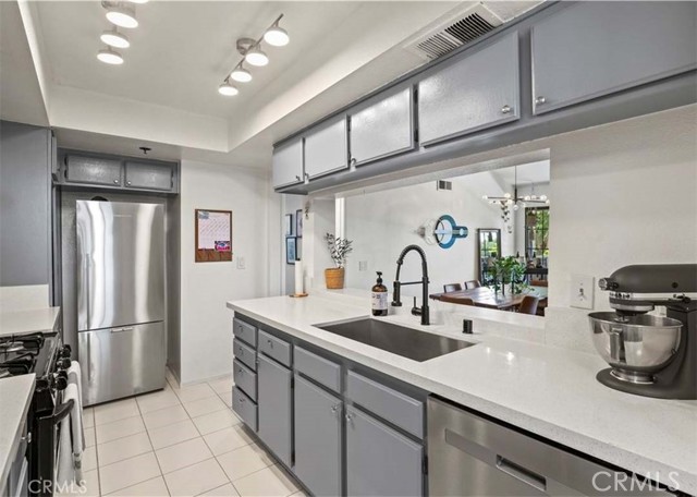 Welcome to this beautifully updated top-floor 2-bedroom, 2-bathroom condo in the heart of Reseda, offering comfort, style, and scenic views. The home features vaulted ceilings, recessed lighting, and new laminate flooring throughout, creating a bright and airy atmosphere. The spacious open floor plan is perfect for both everyday living and entertaining. A sliding glass door opens to a full-length private balcony overlooking the lake at Reseda Park, providing a peaceful outdoor retreat with lovely views. The updated kitchen is equipped with quartz countertops and stainless-steel appliances, blending modern finishes with functional design. The primary suite boasts high ceilings, a walk-in closet, and a beautifully updated en-suite bathroom with dual vanity and a custom tiled shower enclosure. The guest bedroom offers a full-length closet and charming views of the Los Angeles River. Additional highlights include an in-unit stackable washer and dryer closet and two parking spaces in a secure underground garage. A wonderful opportunity to lease a stylish, move-in-ready condo in a convenient location near parks, shops, and dining.