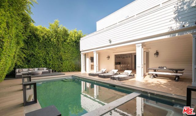 Welcome to this privately nestled true Traditional in the Melrose Village FULLY FURNISHED! On a gated and secured lot sits a 3,597 sqft 4 bed 5 Bath home with an oversized rooftop deck with 360 degree views of the LA skyline. High ceilings throughout provide a grand feel that leads you out onto a privately hedged backyard oasis. Built to take full advantage of the indoor outdoor living that LA is made for. Large spa and pool is surrounded by space to entertain and relax. The first floor is accommodated by a formal dining room, wine cellar, as well as an en suite guest bedroom. Upstairs the primary suite is accompanied by 2 more bedrooms and a laundry room for easy access. Stairs lead to a generous rooftop deck overlooking LA. Centrally located, you are a short walk from the best shopping and restaurants la has to offer. Also available for sale at $4,200,000.