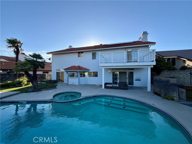Now Available for Lease – Stunning Pool Home with Views: This stunning light-filled home offers 3,511 sq. ft. of living space with 5 bedrooms, 3 full bathrooms, a spacious loft, and an attached 3-car garage, providing comfort, style, and plenty of room to live and entertain. The interior features a spacious living room and family room, each with its own fireplace, along with a formal dining area, high ceilings, custom chandeliers, crown molding, and recessed lighting throughout. The gourmet kitchen offers abundant granite countertops and cabinetry, a walk-in pantry, and bay windows overlooking the pool and backyard. It is equipped with stainless steel GE Profile appliances, including a 5-burner gas stove, refrigerator, dishwasher, microwave, and multiple sinks. The main floor also includes a bedroom, full bathroom, and laundry area, providing convenience and flexibility for guests or extended family. A beautiful staircase leads upstairs to an expansive loft with built-ins, ceiling fans, and recessed lighting, perfect for a second living area, office, or entertainment space. The primary suite features double-door entry, a spacious walk-in closet plus an additional closet, and a private balcony. The primary bathroom includes a soaking tub and separate shower. Upstairs you will also find three additional bedrooms and a full bathroom, with one bedroom featuring its own balcony offering beautiful city and pool views. The backyard is designed for relaxation and entertaining with a sparkling pool and Jacuzzi, covered patio area, and a side yard with lush landscaping, all set against stunning views. Additional amenities include solar panels for energy efficiency and a Nest thermostat for modern climate control. Ideally located in a quiet, sought-after neighborhood, the home is close to highly desirable schools, the new Vineyard shopping center, and a variety of retail and dining options. Landscaping and pool service are included in the rent.This beautiful home offers the perfect blend of space, comfort, and resort-style living.