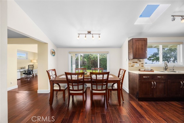 A charming 3-bedroom 2-bath home situated in the desirable and serene area of La Crescenta, surrounded by beautiful mountain and valley views. The light-filled living room with high ceilings & a fireplace, creating a warm & inviting atmosphere. A separate step-down family room offers additional living space & includes a study nook, ideal for an office or homework area, & a sliding glass door opens to the backyard. The formal dining area sits adjacent to the kitchen and has large picturesque window overlooking the lush backyard. The updated kitchen offers granite countertops, dark wood cabinetry with hardware, stainless steel appliances, a vented range hood, & a skylight that fills the space with natural light. The laundry area is conveniently located next to the kitchen & has a side door providing direct access to the backyard. The primary suite has its own private full bath with a glass-enclosed tub/shower combination and tile surround. Two additional bedrooms share a hallway full bath, also with a glass-enclosed tub/shower & tile surround. The backyard is peaceful & serene, with lush landscaping, a patio area & beautiful valley and mountain views. The generous flat lot offers space for outdoor entertaining, gardening, or future possibilities. 2-car garage with automatic opener & driveway with pavers providing extra parking. Additional features include copper plumbing, dual-pane windows, ceiling fans in the living room & all bedrooms, wood flooring in the main living areas, tile flooring in bathrooms, & central air & heat. Recent improvements include: a new Class A roof (TruDefinition Duration Cool Plus Midnight architectural shingles), new exterior paint, new fence in 2024; new sliding patio door in 2023; new 35-ft sewer line from house to street in 2021; seismic retrofit upgrade & new water heater in 2019; and a 200-amp electrical panel & new kitchen hood vent/duct in 2015. With these upgrades and improvements, the home offers added peace of mind. A wonderful opportunity to own this lovely La Crescenta home with renowned schools.