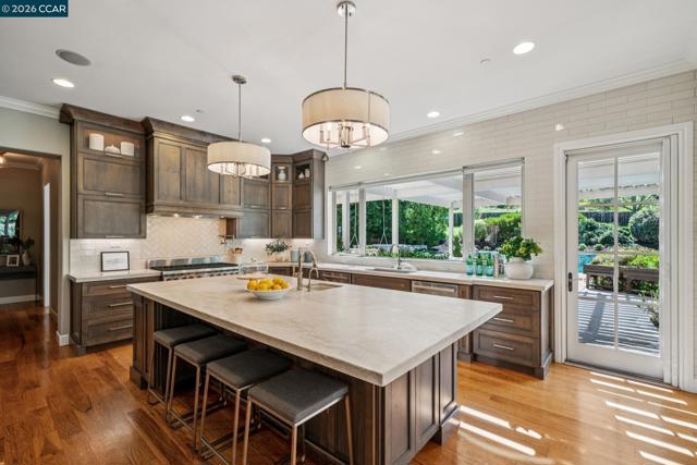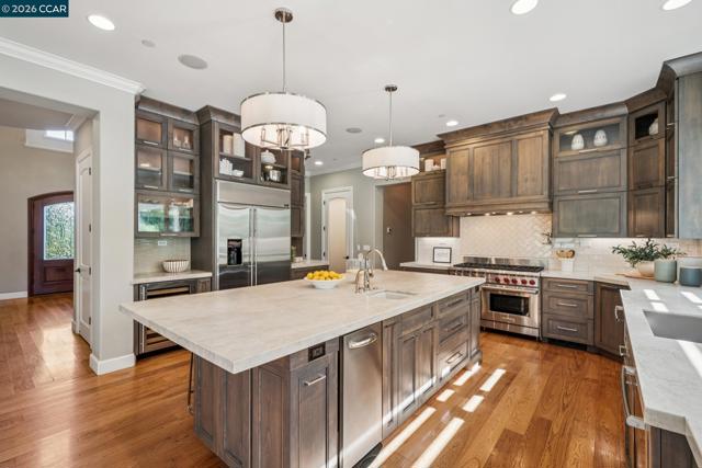 AMAZING.....Absolutely BEAUTIFUL home tucked at the end of a quiet cul-de-sac, this stunning residence offers exceptional curb appeal. The heart of the home is a spectacular chef’s kitchen featuring honed Taj Mahal quartz countertops, a dramatic subway tile accent wall, and an oversized center island with seating for six. The kitchen opens seamlessly to the expansive family room and overlooks the incredible backyard creating the perfect indoor-outdoor flow. into elegant formal living and dining rooms, while a striking powder room with designer wallpaper creates a memorable first impression. Step outside to your private retreat complete with a sparkling pool, sport court, sprawling lawn, and outdoor kitchen—ideal for entertaining and everyday enjoyment. Downstairs features en-suite bedroom plus an additional room currently used as a wellness retreat with sauna. A custom mudroom with built-ins connects to the spacious garage. Upstairs, the luxurious primary suite w/ private balcony with views ,a spa-inspired bathroom, three additional bedrooms, one is so huge it could be used as media room, playroom etc. All baths recently remodeled. This house is so insanely beautiful....Nearly one flat acre of beauty. Near hiking trails, schools, shopping and more!