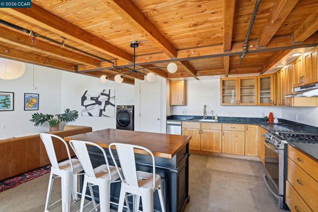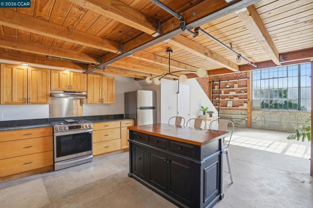 Discover this distinctive live-work loft where historic character meets modern functionality. This inspiring space features soaring ceilings and a dramatic wall of windows that floods the interior with abundant natural light, creating an open, airy atmosphere perfect for both living and creative pursuits. Rich exposed brick walls and industrial details give the loft an authentic artist-studio vibe, blending warmth and character with the flexibility today’s lifestyle demands. The updated kitchen offers modern conveniences and clean finishes, making it equally suited for everyday living or entertaining guests in style. The expansive open floor plan provides endless possibilities—ideal for artists, designers, entrepreneurs, or anyone seeking a dynamic live-work environment in one of Oakland’s vibrant urban settings. With its unique architectural elements and inspiring light-filled interior, this loft delivers a rare combination of style, creativity, and versatility. Conveniently located minutes from the Bay Bridge with easy access to Jack London Square, Downtown and Uptown neighborhoods.
