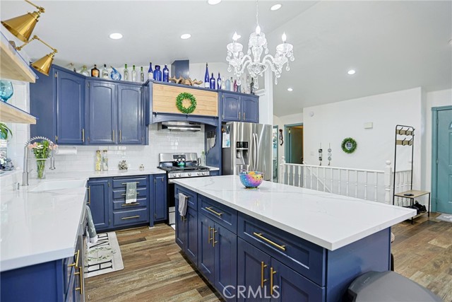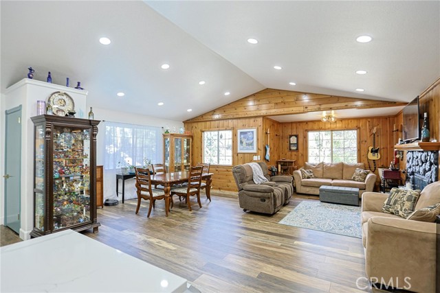 Tucked among the towering trees in the beautiful community of Crestline, this storybook 3 bedroom 2 bathroom mountain retreat blends timeless charm with modern style. The bright, open kitchen showcases navy blue cabinetry, quartz counter-tops, stainless steel appliances, and a spacious island that’s perfect for gatherings and entertaining. The inviting open floor plan is filled with natural light, with abundant windows that bring the outdoors in and create a bright, airy atmosphere. Step out onto the upper deck and take in the tranquil treetop views — the perfect setting for morning coffee, sunset unwinding, or peaceful mountain evenings under the stars. A private driveway and attached two-car garage add everyday convenience to this serene escape. Located just minutes from scenic trails, water activities, shopping, dining, and the community charm of Lake Gregory Regional Park, this home offers the perfect opportunity for a full-time residence, weekend getaway, or mountain investment.