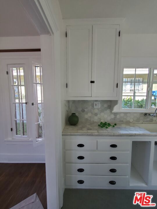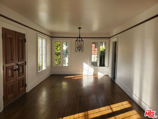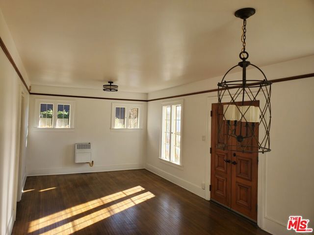 Charming and thoughtfully updated 1921 bungalow offering 1 bedroom and 1 bathroom with approximately 700 square feet of living space. This quaint home has a classic bungalow feel with great natural light, hardwood floors, French windows, and an open living and dining space that feels bright and welcoming throughout the day. The kitchen features vintage details, marble hex tile counters and backsplash, a farmhouse sink, and newer appliances, while the bathroom has been fully renovated with new tile, a Kohler tub, and restored cabinetry that maintains the character of the home. The bedroom sits quietly toward the back with a small walk in closet and access to the backyard. Outside you will find both a front yard and a private backyard surrounded by bamboo with pea gravel and plenty of room for outdoor seating, dining, or gardening. A detached one car garage can accommodate a small car or be used for extra storage, and a stacked washer and dryer are located in a dedicated laundry closet just off the back porch. Located in the historic Jefferson Park neighborhood of West Adams with convenient access to the Expo Line, the 10 freeway, USC, Downtown LA, and the Westside.