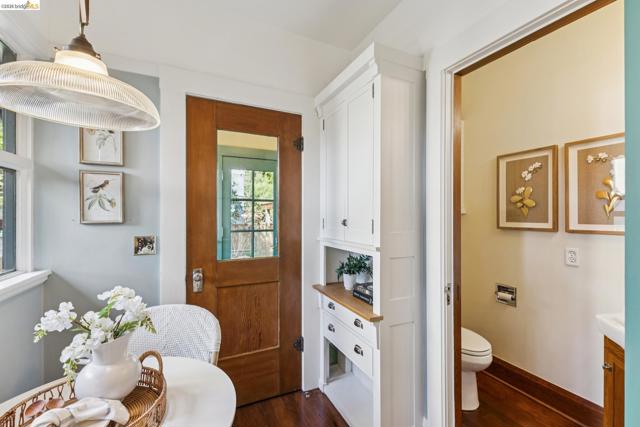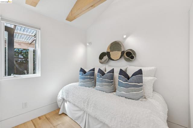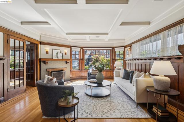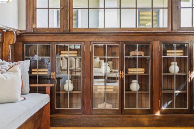 A truly exceptional Arts and Crafts level-living bungalow + a permitted, modern, level-in ADU, in an ideal Rockridge location. To quote Henry L. Wilson, architect and author of The Bungalow Book, “Cozy, charming and distinctly Californian, the bungalow is an enduring architectural icon.” Renovated by Jarvis Architects, the gorgeous wood paneling, wainscoting, stained glass windows and built-in cabinetry create a warm and gracious environment, while the modernized kitchen & bathroom assure comfortable contemporary living. Lovely, mature gardens in front and rear ideal for having small gatherings. Level-in, spectacular detached ADU in backyard with exposed wood beams includes kitchen and bathroom. The shared driveway has space to park one car, without blocking the neighbor (owner had a Toyota Rav-4 that fit, buyer to verify size of their car). Large attic with plywood provides critical storage space. Moments to all of the very best of Oakland and Berkeley, and only blocks to Rockridge BART and transbay buses for commuting. A truly special place to call home.