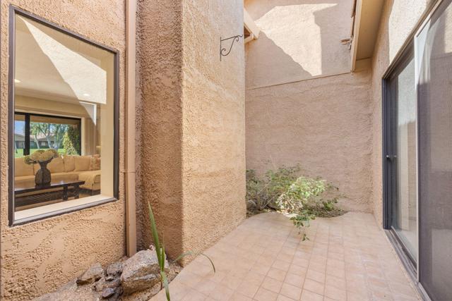 Located in the guard-gated community of Chaparral Country Club, this 2-bedroom, 2-bath condo offers approximately 1,533 sq ft of comfortable desert living with beautiful golf course and mountain views. The light-filled floor plan features a spacious living room with fireplace, dining area, and large sliding doors opening to a private patio overlooking the fairway--perfect for enjoying the desert lifestyle. Additional highlights include a bright kitchen, inviting atrium, and attached garage. Chaparral Country Club offers an 18-hole golf course, clubhouse, fitness center, tennis and pickle ball courts, and multiple pools and spas, all conveniently located near the shopping and dining of Palm DesertCondo has a New AC/ HVAC system and brand new garage door opener with external keypad.