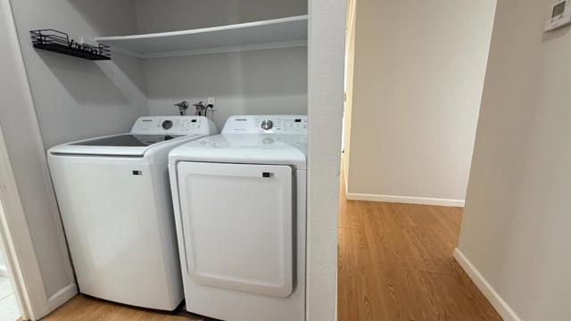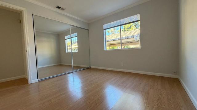 Freshly remodeled and move-in ready, this beautiful ground-floor condominium is nestled in the charming Alexian community surrounded by mature trees and a resort-style swimming pool. The spacious 2-bedroom, 2-bath home features modern hardwood floors and a bright open living and dining area with sliding doors leading to a private patio, ideal for relaxing or entertaining. The updated kitchen offers stylish quartz countertops, a designer backsplash, and abundant cabinet space. Additional highlights include in-unit washer and dryer and two dedicated parking spaces for added convenience. Ideally located within walking distance to Regional Medical Center with easy access to nearby amenities and major commute routes.