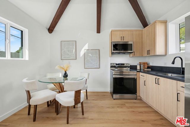 Stunning totally remodeled and all new finishes 3 bed/2 bath Traditional with detached 1 bed/1 bath ADU with beautiful contemporary finishes and filled withnatural light. Enclosed and gated front yard with charming brick walkway and mature tree leads to double doors opening to entry with built-ins. Living room with modernlinear fireplace and light oak flooring throughout. Open gourmet kitchen with center island with quartz countertops waterfall edge finish and breakfast bar, all new cabinetry,farm sink, all new stainless steel appliances leads to dining room and family room with sliding door to back covered patio and grassy yard. Primary suite with sliding door toside deck patio, custom built wall of closets, and spa-like full bath with marble and tile finishes, dual sinks, soaking tub and shower. 2 additional bedrooms in the main homeand a separate ADU with beautiful vaulted and wood beamed ceilings in living room with dining area and all new kitchen, sliding door to private back patio and entrance andincludes a spacious 1 bed and 3/4 bath with tile finishes, laundry hook-ups and mini split unit ac/heat. Additional features include central ac/heat in main house, tanklesswater heater, all newly installed dual paned windows, newer roof and sliding doors throughout. Newly landscaped and hardscape in backyard. Close proximity toWestwood, UCLA, Century City, Beverly Hills and 10 and 405 fwy access and light rail. Overland Avenue Elementary School. Move right in!