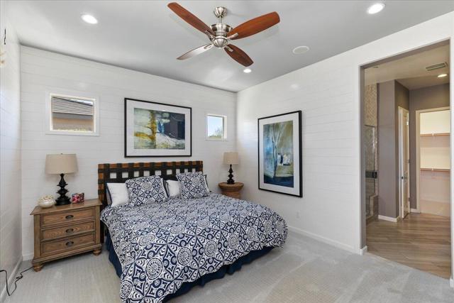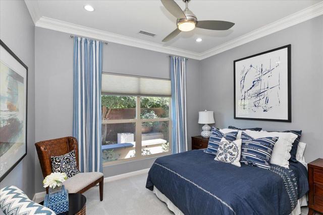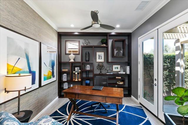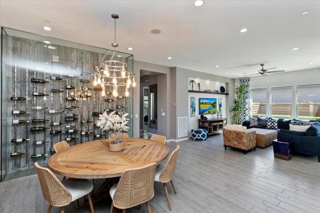 Former model home on a premium homesite, this enhanced Solare residence in Trilogy at the Polo Club offers designer upgrades, inviting indoor-outdoor living, and turnkey furnishings. The open-concept layout is designed for effortless desert living and entertaining. The gourmet kitchen features classic shaker-style cabinetry, slab granite countertops, and an oversized island perfect for gathering and casual dining.Expansive double multi-slide glass doors open to a spacious covered patio and beautifully landscaped yard, extending the living space outdoors for relaxed desert evenings and entertaining under the stars.The private primary suite includes a spa-inspired bath with a framed vanity mirror and sleek walk-in shower. A versatile den provides space for a home office or media room, while the smart space laundry and private guest quarters add comfort and convenience.Offered fully furnished, this home presents an ideal move-in ready or seasonal lock-and-leave desert retreat. Residents enjoy proximity to June Hill's Table, the community clubhouse restaurant open to the public. Additional clubhouse amenities require optional membership.Opportunities to own a former model home on a premium homesite, offered fully furnished, are limited within the community. The home also includes a prepaid leased photovoltaic (PV) solar system. This home is located in the non-age restricted area of Trilogy at the Polo Club. Social membership is transferable for $3,000. one-time fee, $230, monthly membership.