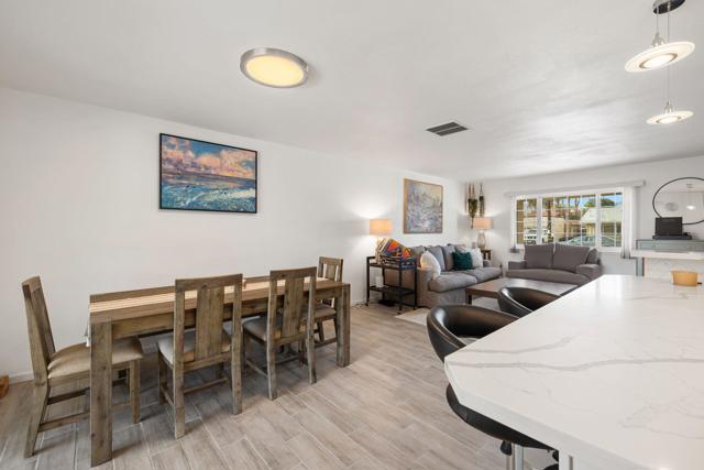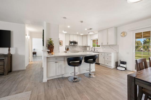 Welcome to this beautifully remodeled 2-bedroom, 2-bath residence that seamlessly blends modern design with relaxed desert living. The home showcases an open-concept layout ideal for both everyday comfort and entertaining.The stylish kitchen anchors the living space, featuring sleek stainless steel appliances, abundant cabinetry, and clean contemporary lines. Wood-plank tile flooring runs throughout, providing durability and a cohesive, upscale look. New windows and doors frame stunning mountain views while filling the home with natural light, creating a bright and welcoming interior. Both bathrooms have been tastefully renovated with modern fixtures and finishes.Outdoors, the expansive fenced backyard offers privacy and tranquil golf course views. A shaded patio provides the perfect setting for outdoor dining, relaxing evenings, or entertaining guests. The circular driveway enhances curb appeal while adding everyday convenience.Located in Palm Desert Country Club, residents enjoy access to two community pools and a clubhouse just a short walk away, offering golf and dining options. This is more than a home--it's a lifestyle opportunity in the heart of the desert.Garage has a brand new mini split HVAC.Please call to schedule your private showing.