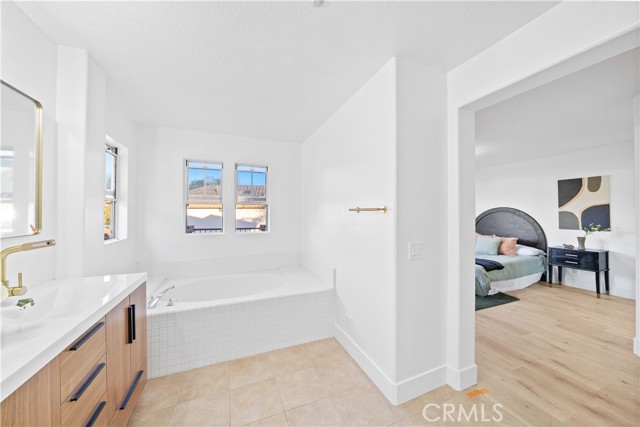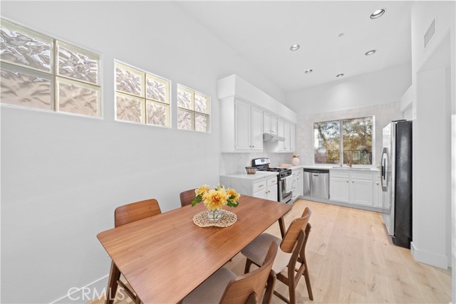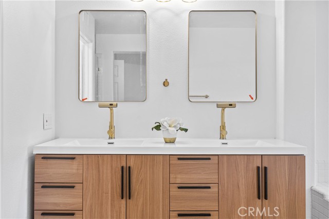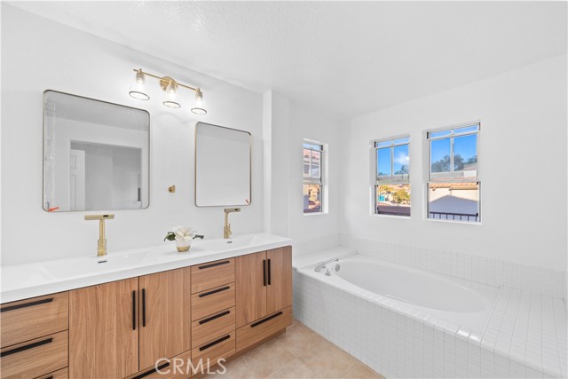 Turnkey remodeled detached home in the highly sought-after Villavante community of Rancho Santa Margarita, located just moments from Tijeras Creek Golf Course. This light-filled residence offers approximately 1,712 sq ft with an open floor plan and beautiful hardwood flooring throughout the entry, living, and dining areas. The main level features a flexible office or ideal for guests, plus a convenient full bathroom with shower. The spacious kitchen includes quartz countertops, rich wood cabinetry, stainless steel appliances, and a bright breakfast nook. Upstairs, the oversized primary suite features a private patio deck, a large walk-in closet, and a spa-style bath with tub and separate shower. The secondary bedroom includes its own full bathroom for added privacy. Enjoy peaceful canyon views from the backyard with patio and low-maintenance artificial turf. Additional upgrades include fully paid solar, complete PEX re-pipe, and a garage with epoxy flooring and ample storage. Close to pools, spa, RSM Lake, parks, hiking trails, shopping, dining, tennis, and pickleball.