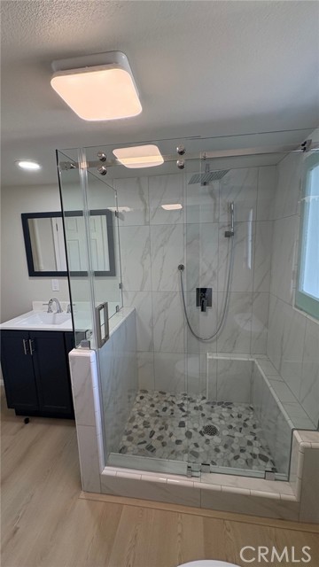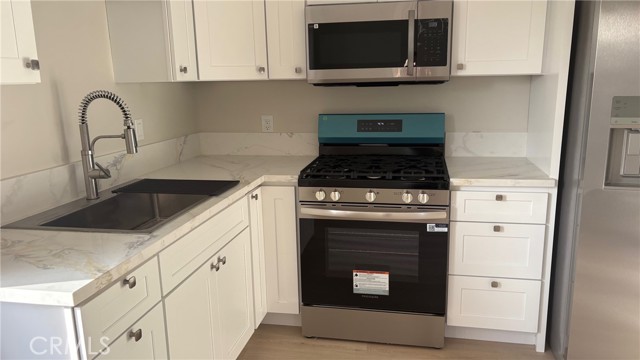 Completely remodeled 3-bedrooms, 2-bathroom on the 2nd floor, and has front parking for 2-3 cars. Features brand-new engineered vinyl flooring, new doors, new drywalls, new plumbing, new electrical fixtures, new recess lights, and fresh paint throughout. The spacious kitchen opens to the family room and has been fully updated with brand-new cabinets, new granite countertop, new sink and faucet, new appliances including a gas range, microwave, and refrigerator. The home also has a brand-new central AC/heating system.Laundry Room with Brand New washer and Dryer.Both bathrooms are fully remodeled with new showers, modern fixtures, and new bathroom vanity. This bright and clean condo offers a comfortable and modern living space, perfect for families or professionals. Located close to Santa Ana historic commercial downtown.Move-in ready and beautifully fully upgraded.