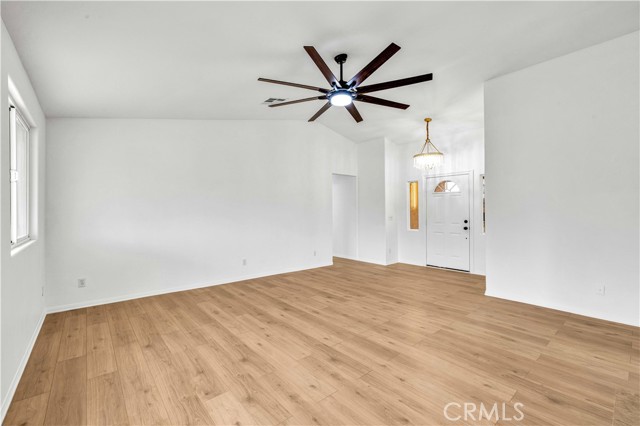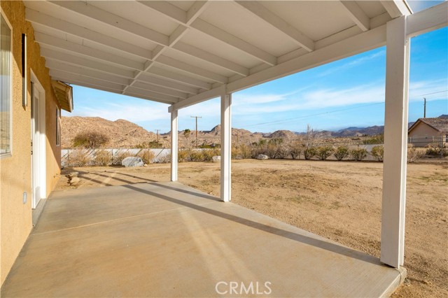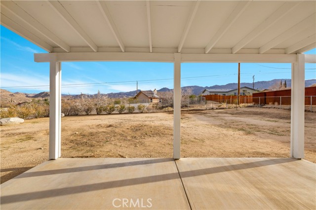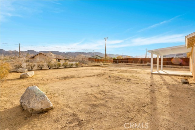 Location, location, location. This remodeled 3-bedroom, 3-bath home is perfectly positioned at the top of the hill between the Joshua Tree National Park entrance and downtown Joshua Tree, placing you just minutes from the area’s popular restaurants, shops, and local attractions. As you arrive, you’ll appreciate the beautiful mountain backdrop along with the functionality of a fenced front yard section and a fully fenced backyard, offering both convenience and privacy. Step inside and you’ll immediately notice the large living room with vaulted ceilings, new luxury vinyl plank flooring, and expansive windows that capture views toward Joshua Tree National Park. The living room is anchored by a wood-burning fireplace with striking floor-to-ceiling tile, creating a stylish focal point and adding a touch of luxury to the space. The remodeled kitchen features attractive countertops, abundant storage, and plenty of counter space, and flows seamlessly into the large dining area, which also enjoys those beautiful desert views. Nearby you’ll find a convenient half bath along with an indoor laundry room. Moving through the rest of the home, the primary bedroom is generously sized and includes a walk-in closet and a remodeled ensuite bathroom. The two additional bedrooms are both well-sized, and the guest bathroom is centrally located and features a shower-tub combo. Additional features include a fully finished two-car garage for parking, storage, or additional workspace. With the major updates already completed, this home is move-in ready and offers incredible flexibility. Its prime location makes it an excellent candidate for a short-term rental, while also serving perfectly as a primary residence or desert getaway. Homes in locations like this rarely come available—schedule your showing and see what makes this Joshua Tree property so special.