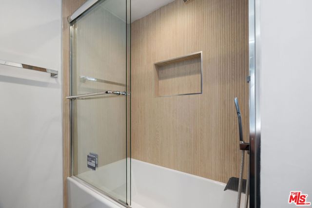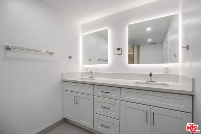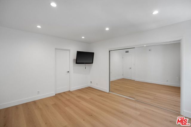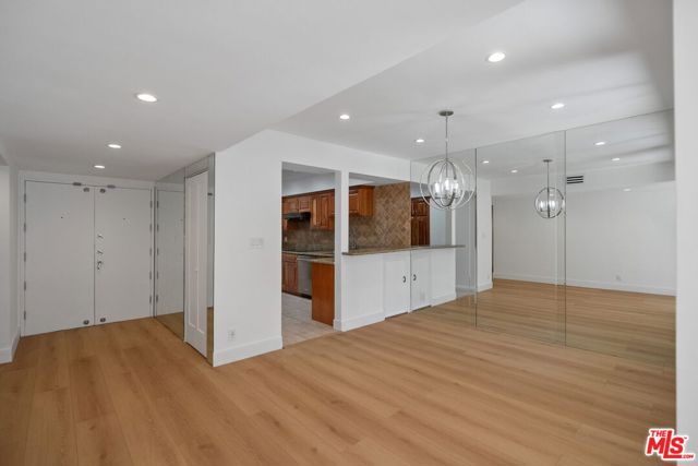 Welcome home to one of Encino's most distinctive condo addresses. This recently renovated 3-bedroom, 2-bath residence at the iconic Woodley building delivers a living experience that is rare in the condo market, combining refined interiors, spa-quality finishes, and a private outdoor terrace, all on the top floor with no neighbor above. Step inside to find wide-plank blonde hardwood floors flowing throughout a sun-drenched open floor plan. The living and dining areas make an immediate impression: a full-wall mirrored panel doubles the sense of space, while an orbital globe chandelier adds effortless elegance. Sliding glass doors connect the living room seamlessly to your private covered patio, a true outdoor living room complete with a wall-mounted TV and ceiling fan, perfect for California indoor-outdoor living. The kitchen features rich raised-panel cabinetry, granite countertops, a diamond-pattern stone tile backsplash, and stainless steel appliances, including a French door refrigerator and dishwasher. A peninsula bar opens to the dining area, ideal for entertaining. A wet bar with a beverage refrigerator is tucked into the living space, adding a convenient hospitality touch. The primary suite is a retreat unto itself, with a spa bathroom showcasing dual backlit LED vanity mirrors, quartz countertops, white shaker cabinetry, and a frameless glass walk-in shower wrapped in floor-to-ceiling wood-look tile with a rain head fixture and built-in niche. The second bath continues the theme with a tub/shower combo, glass sliding doors, and a rain shower. The third bedroom offers exceptional versatility as a home office, guest suite, or creative space. Residents enjoy one of the best lobbies in the Encino condo market: elegant designs, terrazzo floors, and a welcoming lounge area that creates a genuine sense of arrival. The secured garage features gated key-access entry with elevator, and includes two separate assigned parking spaces, one on each side of the drive aisle, offering privacy and ease of access. Top-floor living, refined finishes, and a private outdoor retreat. This is Encino condo living elevated. Schedule your private showing today.