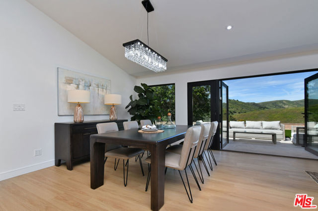 Located on a quiet cul-de-sac in prime Calabasas, this newly renovated showplace offers approximately 2,300 square feet of thoughtfully designed living space, featuring 4 bedrooms, 3.5 bathrooms, and a very rare detached ADU ideal for guests, a private office, or rental income. An impressive blend of modern luxury and quintessential California indoor-outdoor living, the home is filled with natural light and elevated finishes throughout. The showpiece gourmet chef's kitchen has been beautifully remodeled with a large center island, quartz countertops, custom cabinetry, designer pendant lighting, and brand-new top-tier stainless steel appliances. The kitchen flows seamlessly into the dining area and spacious family room, highlighted by a vaulted ceiling, chic fireplace, and walls of glass. French doors open to the rear patio, creating effortless indoor-outdoor entertaining. The luxurious primary suite is a true retreat, complete with a spa-inspired, Four Seasons-style bath, walk-in closet, private outdoor sitting area, and breathtaking hilltop views. Three additional bedrooms offer generous space and comfort for family or guests. Additional upgrades include a new roof, new windows, gleaming wood-style flooring, and direct access to the two-car garage delivering a turnkey experience with thoughtful improvements at every turn. The one-of-a-kind backyard oasis showcases explosive mountain views, a park-like turf area, and multiple seating and entertaining spaces designed for year-round enjoyment. Conveniently located near premier shopping, dining, parks, hiking trails, beaches, and award-winning schools, this exceptional property offers the perfect balance of privacy, style, and location.