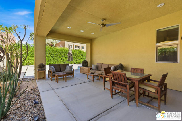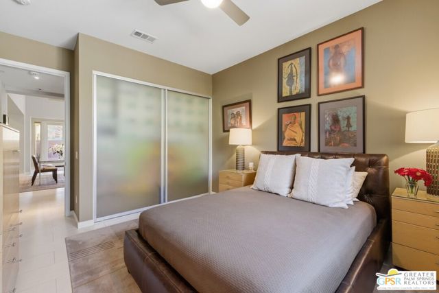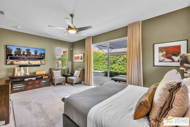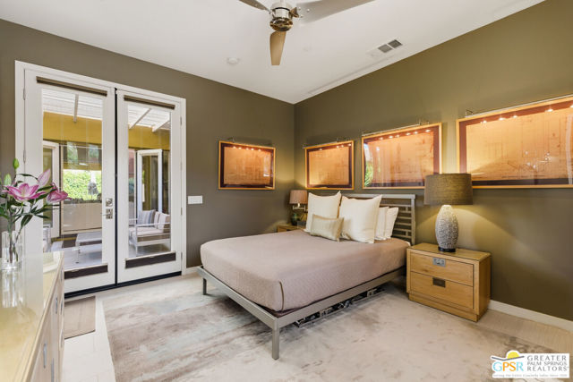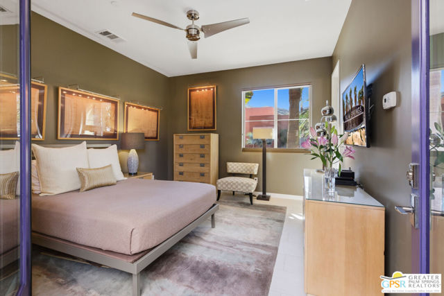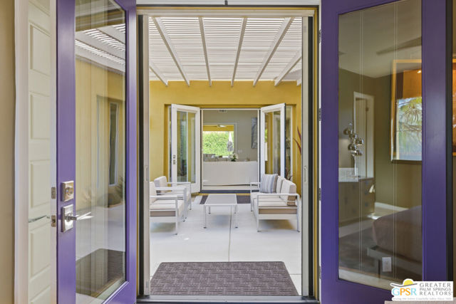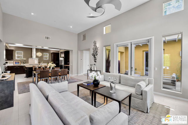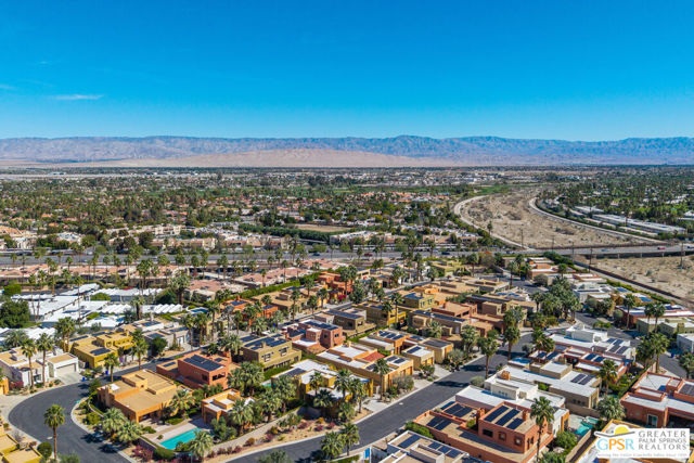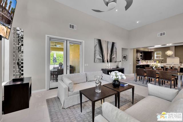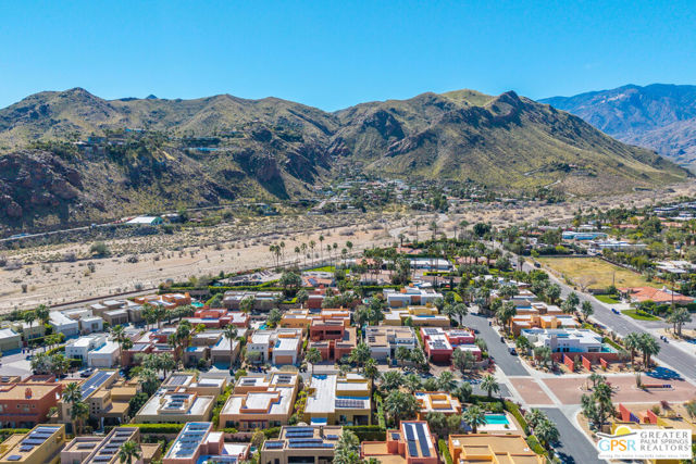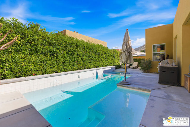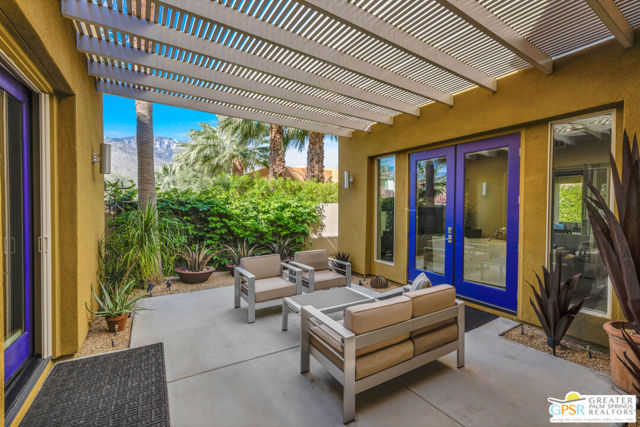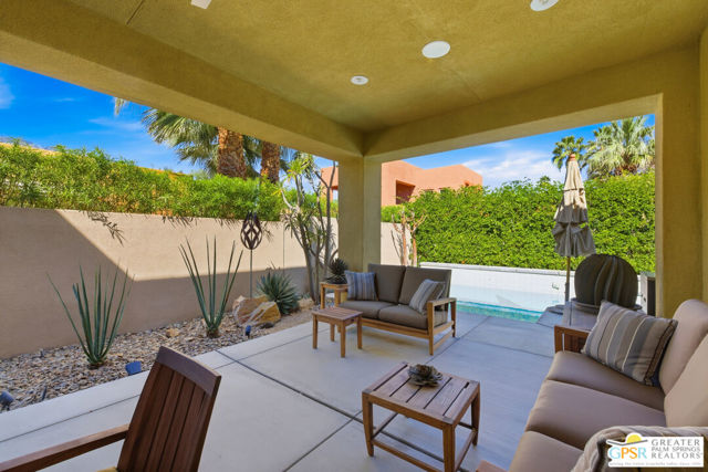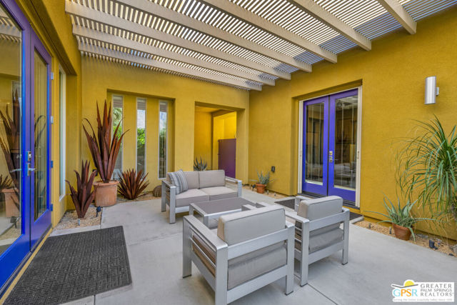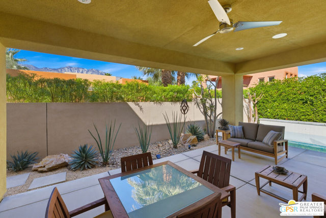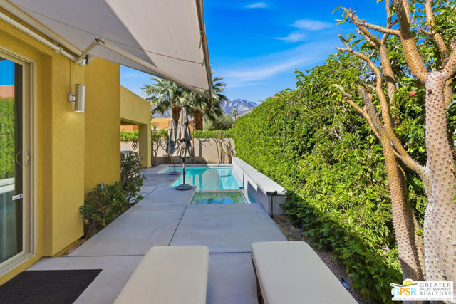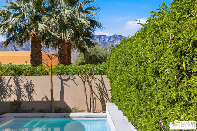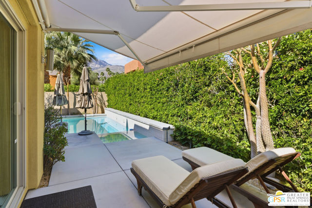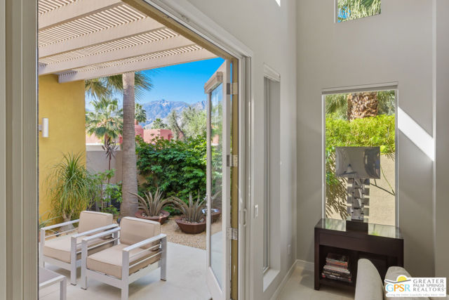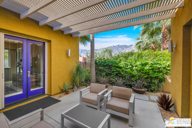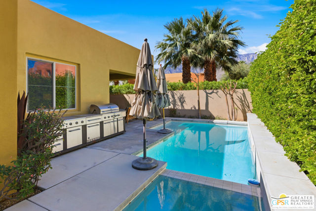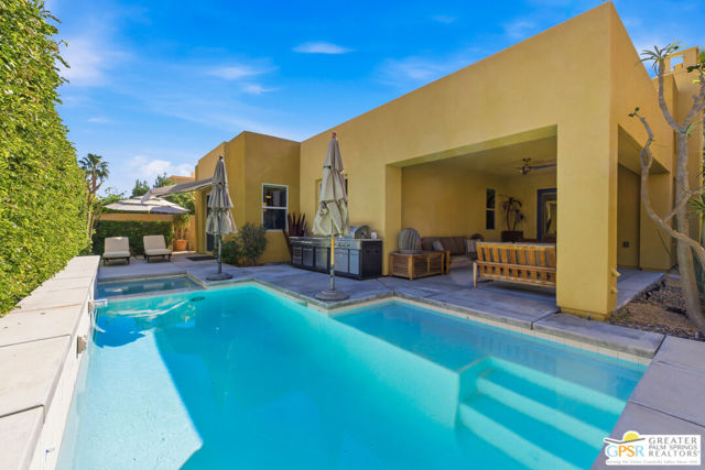 Nestled in the highly sought-after south end of Palm Springs, Luminaire Encore enjoys a premier location just off prestigious Araby Drive, framed by a dramatic mountain backdrop. This exceptionally rare Plan A residence, built in 2011, is a sophisticated single-story contemporary home situated on fee land, offering true ownership. Only six Plan A homes were constructed within this exclusive enclave. Designed for elevated desert living, the home showcases an expansive great room floor plan where the kitchen, dining, and living areas flow seamlessly together, ideal for refined entertaining and effortless everyday living. French doors open to both the front courtyard and rear patio, creating a seamless indoor-outdoor lifestyle. A private guest casita, accessed from the courtyard, provides a serene and secluded retreat for visitors. The gourmet kitchen is elegantly appointed with Silestone countertops, stainless steel appliances, a built-in convection oven and microwave, five-burner gas range, and generous cabinetry. The spacious primary suite is thoughtfully positioned near the pool and spa, offering a tranquil, resort-inspired escape. Additional highlights include three bedrooms and three bathrooms, energy-efficient appliances, owned rooftop solar panels, a tankless water heater, outdoor kitchen, and updated halogen lighting, seamlessly blending contemporary luxury with sustainable living in one of Palm Springs' most desirable communities.