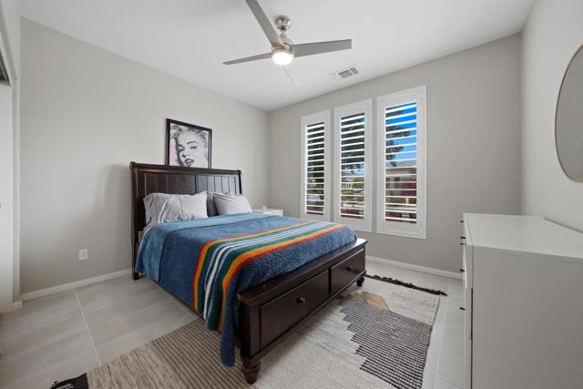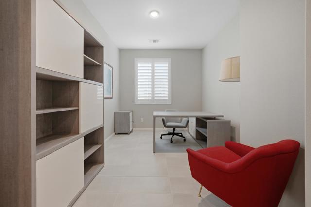 Centrally Located Near the Clubhouse - Designer Appointed Refresh Model Featuring nearly 2,000 Sq. Ft. with 2BR/2BA+Den & Built-In Office/Smart Space...This is a SHOW STOPPER. Upgrades Galore, including rolling wall of glass, unique slab counters and upgraded kitchen cabinets with loads of storage, warm gray tile floors throughout and rich plantation shutters. The popular Refresh Model lives large with no wasted space, open great room floor plan and nice bedroom separation between Primary and Guest Bedroom with nearby Den. The Smart Space off the entry features two desk areas and abundant storage. The generous outdoor living space with low maintenance desertscape and putting green offers nice South Mountain Views. The cozy gated courtyard offers paver decking and sitting area looking out the mountains. The Garage has A/C mini split. Polo Club Membership available to transfer. Make this house YOUR HOME & come experience The Trilogy Life Today!
