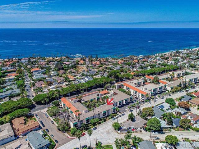 Coastal gem overlooking one of the sparkling pools and lush tropical courtyard, ideally situated away from street noise. This single-level, updated, sunny corner unit is a couple of blocks from iconic Windansea and local beaches. Birdrock's vibrant coffee scene, great restaurants, La Jolla Community Center, and bike path are all a short stroll away! The private balcony has a peek-a-boo ocean view, a new sliding door, a security door, and windows capturing fresh ocean breezes year-round. Conveniently close to an assigned parking space, elevator, laundry room, lockable storage, fitness room, 2 clubhouses, pools & spas. A rare and unique opportunity to own this stunning unit in Villa La Jolla, with its low inventory and competitive HOA fees. A true turnkey GEM with resort-style living in La Jolla.