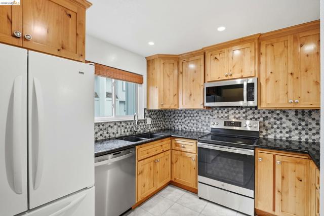 Ideal Location! Low HOA's. New energy efficient windows and custom shutters. Freshly Painted. All new carpeting. Step into this warm and welcoming North Hayward townhome, located in an up-and-coming neighborhood where community investment and new energy are bringing exciting changes. Featuring two spacious bedrooms,each with its own en suite bathroom. This home offers a comfortable layout, large laundry room, and plenty of potential to make it your own. Just minutes away, the historic Lorenzo Theater is undergoing renovations that aim to restore it as a vibrant local destination for entertainment and community events. Tucked just behind the newly renovated Kennedy Park, with playgrounds, picnic areas, and open green space, you're also only steps from the private community pool and clubhouse. It's a perfect setting for both fun and relaxation close to home. Inside, you'll find a recently updated kitchen with modern appliances and custom solid-wood cabinets. The generous living room features a cozy gas fireplace for cool evenings, while all-new windows and shutters fill the space with natural light. Out back, a private east-facing patio provides the ideal spot for morning coffee or weekend lounging. Starbucks, Target, EvGo Charging, Imperial Seafood and more around the corner.