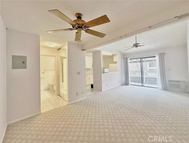 Remodeled Upper-Level Studio in Desirable Northwood – Prime Location. Welcome to this charming turnkey, upgraded upper-level studio condo located in the highly desirable The Springs Community in Northwood, Irvine. This quiet upstairs unit features vaulted ceilings and a private outdoor deck that enjoys abundant natural light throughout the day. The beautifully updated interior includes an upgraded kitchen with granite countertops, modern cabinetry, updated fixtures, electric stove, refrigerator, vent hood, and microwave. The bathroom has also been tastefully remodeled, offering a clean and contemporary feel. Cooling is provided by a newer wall-unit A/C and ceiling fans for year-round comfort. Residents of The Springs enjoy lush, landscaped grounds with meandering streams and walking paths, along with excellent community amenities including a clubhouse, gym, pools, spas, tennis courts, EV charging stations, and community laundry facilities. The property includes one assigned covered carport with a storage cabinet. The community coin-operated laundry room is conveniently located across from the unit near the pool clubhouse. Ideally situated across the street from Zion Market shopping center, with easy access to walking trails, shopping, dining, and major freeways (I-5, 405, 22 and 55). Located within the boundaries of top-rated Irvine schools including Santiago Hills Elementary, Sierra Vista Middle School, and Northwood High School. Available immediately. No smoking. Water and trash included in rent.