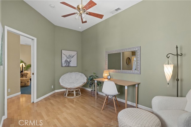 Located in the lovely Mission Ranch neighborhood, this inviting home offers space, privacy, and easy living. The well-designed split floor plan features three large bedrooms, with the primary suite set apart for added privacy and it's own access to the backyard pool. The primary suite is a true highlight and features a remodeled bathroom with a large walk-in shower plus a huge walk-in closet providing ample storage space. The soaring ceilings throughout the home create a bright, open feel, and the spacious den near the entry is the perfect space for an office, media room, or additional living area. Outside, enjoy a nicely landscaped yard and sparkling swimming pool. The pool backs up to a public parkway so there are no nosy neighbors behind you. Additional features include a classic ceramic tile roof and a gated front courtyard that adds an additional sense of privacy and security. Front yard landscaping is maintained by the HOA making upkeep simple and convenient. Comfortable, stylish, and located in a desirable area close to many services makes this home a must see!
