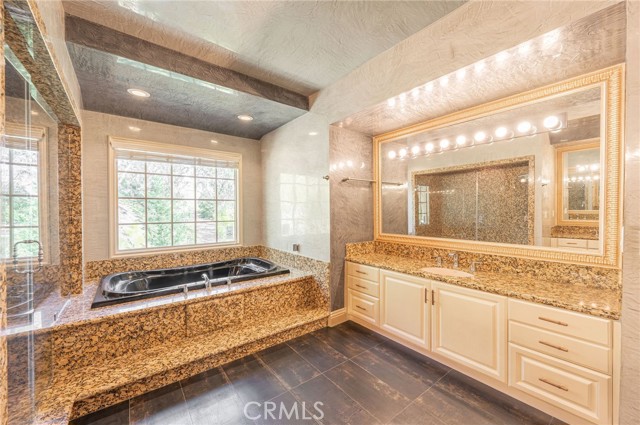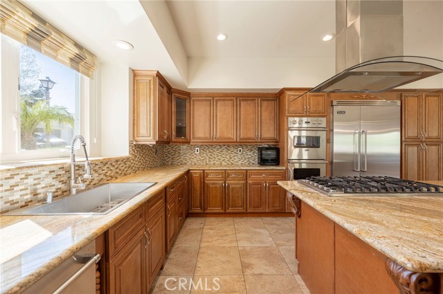 Welcome to this extremely private, well appointed, custom built residence nestled in the desirable Oakmont Country Club neighborhood of Glendale with neighboring homes on only one side of the property. Impressive double iron door graces the entry inviting to the open concept floor plan with spacious rooms and convenient amenities that seamlessly connects living, dining, and entertainment spaces, perfect for hosting gatherings and making memories. The property boasts 5 bedrooms, 4 bathrooms custom home with 4,400 sqft. living space. Soaring cathedral ceilings in elegant living room, a formal dining room, and a family room adjacent to the gourmet kitchen equipped with stainless steel appliances and casual dining area. The home also includes 3 fireplaces (LVR, FR, MSUITE), recessed lighting, custom drapery and ample closet space. Updated floor plan isolates the primary master suite from the 4 additional bedrooms and baths. The master suite features a cozy fireplace, his and hers walk-in closet, luxurious bathroom, complete with a soaking tub, separate shower, and double vanity. Located discretely upstairs it also feature a private view terrace perfect for your early morning coffee. The other side of the property includes four generously sized bedrooms and bathrooms, separate laundry room and attached 3-car garage. Outside, backyard is your private sanctuary with BBQ area and outdoor patio. Located in the Blue Ribbon school district, this amazing home has far too many features to list. The setting is private and serene and yet extremely convenient.