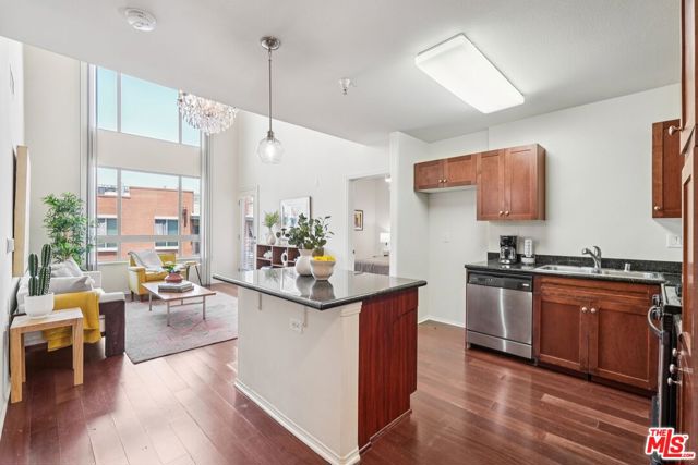 Rarely available and full of character, Unit 440 at Savoy is a 2-bedroom + loft residence that offers dramatic scale and smart versatility in one of DTLA's most vibrant neighborhoods. Freshly painted and with brand new carpet installed, this top-floor home features dramatic 17-foot ceilings and east-facing towering windows. The open-concept living area feels bright, airy, and inspiring, the kitchen comes with granite countertops, clean white cabinetry with ample storage, and a central island that anchors a warm and inviting space flowing seamlessly into the living and dining areas. Upstairs, a cozy loft with a fireplace offers a flexible bonus space ideal for a home office, creative studio, or a private guest retreat. Spacious en-suite bedrooms, in-unit laundry, a private balcony with storage, and 2 assigned parking spaces complete this home. Savoy is a full-service community with standout amenities: a pool, spa, rooftop deck with skyline views, multiple courtyards, fitness center, business center, screening room, guest parking, and 24-hour attended lobby. Located at the intersection of historic Little Tokyo and the creative pulse of the Arts District, Savoy places you in the middle of one of DTLA's most walkable, evolving, and exciting enclaves, just steps from coffee shops, ramen spots, breweries, museums, and Metro access. ***Some utilities and 2 parking spaces are included with rent.***