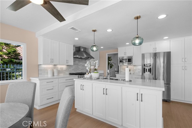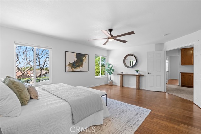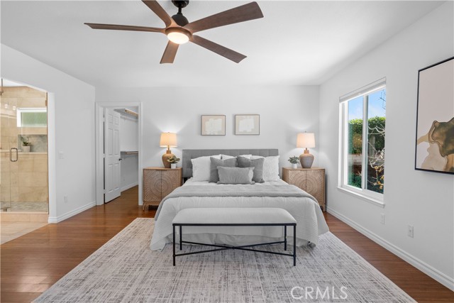 Welcome to this beautifully upgraded 4-bedroom, 3-bath home with a huge bonus room, offering 2,938 sq ft of living space on a spacious 10,636 sq ft lot. Located in the highly sought-after WVUSD, this home combines luxury upgrades, smart technology, & an exceptional location. Enjoy breathtaking sunset views from the backyard & mountain views from the bedrooms & expansive bonus room, creating a peaceful & scenic setting. The backyard is perfect for relaxing or entertaining, featuring a pool, spa, & fire pit—ideal for enjoying Southern California evenings. A standout feature of this home is the large downstairs bedroom with a full bathroom (shower) & walk-in closet, perfect for multi-generational living or a guest suite. The fully remodeled kitchen (2024) is a chef’s dream, featuring premium KitchenAid appliances, including a 48” six-burner smart gas range with electric griddle, dual ovens, & two convertible wok burners, all under a professional 48” range hood. Additional highlights include a 36” French-door refrigerator, triple-rack dishwasher, large island with sink & abundant storage, soft-close cabinets & drawers, & instant hot water at the kitchen faucet. The luxurious primary bathroom has been beautifully remodeled, featuring a huge marble walk-in shower with double doors & dual showerheads, illuminated mirrors, a Moen bidet toilet, & cabinetry & counters that match the elegant kitchen design. The primary suite also offers a large walk-in closet. Smart home upgrades include a Schlage Zigbee-connectable electronic deadbolt, multiple smart switches & dimmers, a smart thermostat, security cameras, & a smart sprinkler controller, making whole-home automation easy & convenient. The home is served by fiber internet, with multi-gigabit connections available from internet providers. Energy-efficient upgrades include fully paid solar with 32 panels & dual inverters, Low-E windows (approximately 3 years old), brand-new R38 attic insulation, & a whole-house fan to help reduce cooling costs. The attic is sealed & California Title 24 compliant. Additional upgrades include new luxury vinyl plank flooring throughout the entire first floor & a garage with overhead racks & abundant storage space. This exceptional home offers modern upgrades, flexible living space, scenic views, & a prime location in one of the area’s most desirable school districts. Walnut Elementary & South Pointe Middle School also offer a dual immersion program.