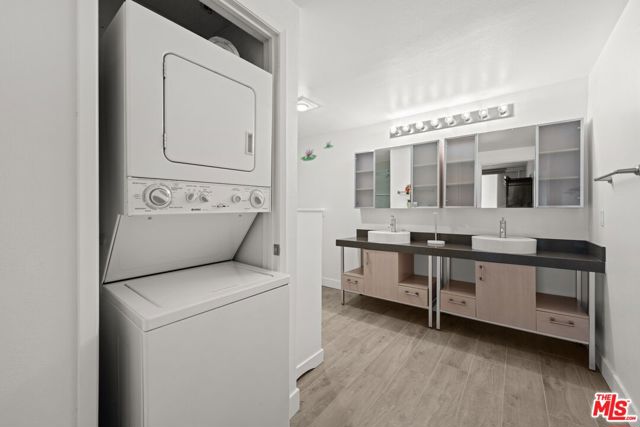 Discover effortless luxury in this updated, furnished 1-bedroom, 1.5-bath condo in the heart of Downtown LA. Nestled in the highly desirable Vero building, this turnkey gem is priced aggressively and includes everything needed for immediate enjoyment in-unit washer/dryer, and a complete suite of kitchen appliances including refrigerator. Bathed in abundant natural light, the open-concept layout creates an inviting space. The sleek, contemporary kitchen and dining area seamlessly transitions into the generous living room ideal for intimate evenings or lively gatherings with friends. Retreat to the serene primary suite, featuring elegant frosted glass barn doors, dual closets, and a beautifully remodeled en-suite bathroom with ceramic tiled floors, fresh wall tiles in the shower, and double sinks. Recent upgrades also include a new HVAC system (only 2 years old) for reliable use. Enjoy Vero's resort-style amenities, a sparkling pool and therapeutic spa, dry cedar saunas, state-of-the-art Cybex gym, lounge pool deck with BBQs and fire pits, 24-hour concierge front desk, controlled access, and 2 secured garage parking spaces included.