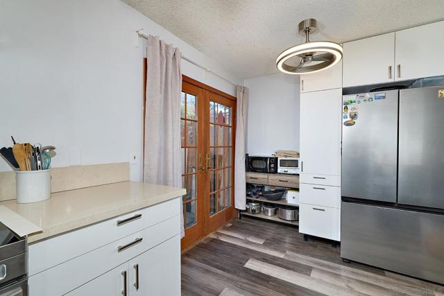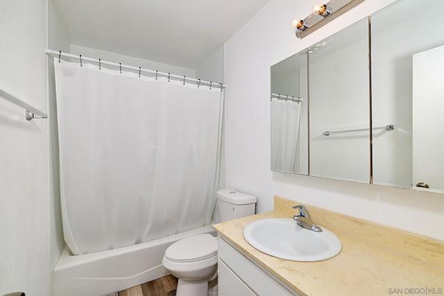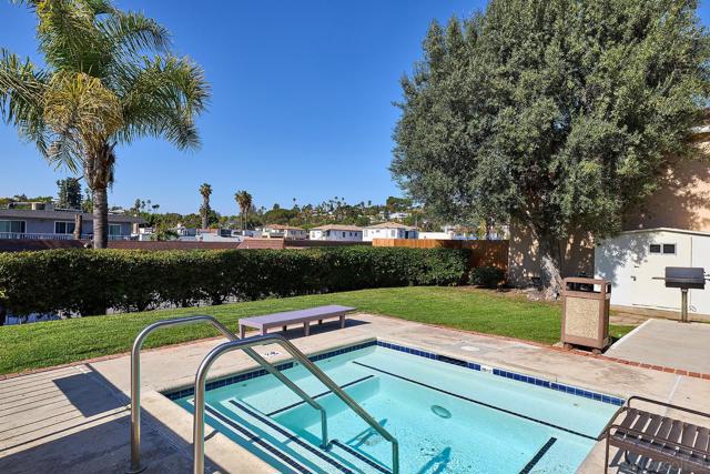 Welcome to this charming downtown La Mesa condo within walking distance or a short drive to fantastic shopping and restaurants in La Mesa Village. Beautifully updated with new lighting, newer paint and newer vinyl plank flooring throughout. This well maintained move in ready condo is filled with natural light. Enjoy entertaining in the spacious living and dining room which flows into the gorgeous kitchen which has space for a breakfast table. The kitchen has been upgraded with new soft touch drawer and cabinets as well as quartz countertops. New stainless steel gooseneck faucet as well as stainless steel appliances: Samsung refrigerator, range & dishwasher. New overhead lighting. Lovely French Doors open to a private fenced outdoor area, the perfect place to sip morning coffee and to relax and unwind with family and friends. Newly installed awning over entry to the patio. The Master Suite boasts a walk in closet & an ensuite bathroom with a tub & shower. The secondary bedroom looks into the patio. New GFCI outlets installed in the kitchen & Bathrooms. Guest bath located in the hallway with a tub & shower. Amenities include a sparkling pool, spa, BBQ, event room, laundry room approximately 20 ft from the front door, and included utilities( water, sewer, and trash). Close to SDSU this condo makes for an ideal income producing property. VA approval is current & in effect. Parking Space #171 located front of complex.