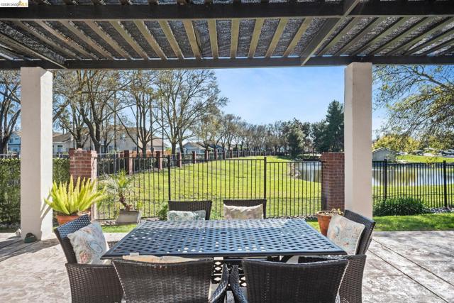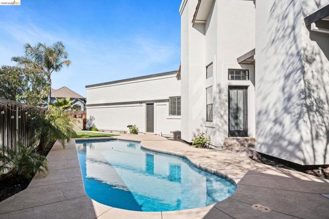 Discover this stunning two-story custom home in the Discovery Bay Golf Course, perfectly positioned to capture peaceful lagoon views from this rare estate lot. The graceful exterior is truly eye-catching - only to be expected from this special custom home. Step inside to beautiful hardwood floors & exceptional wrought iron banisters, plus freshly painted interior that welcomes friends or family! Flexible floor plan offers generous living spaces ideal for everyday living or specialty entertaining! The chef's kitchen offers function + style, featuring granite countertops, double ovens, + mini fridge, great for entertaining/bonus storage. The eat-in kitchen and sit-up island offer plentiful seating options. Dedicated formal dining room and spacious family room are great for gatherings large or small! A unique office/den boasts high ceilings, stunning fireplace and private doors to the sparkling pool! Two bedrooms & full bath + powder room downstairs, while the second floor boasts a private retreat, an elegant bedroom w/ its own balcony & spa-like bath- sunken jetted tub luxuriating in loads of natural light! Separate tiled shower for when you are on the go! Enjoy coffee every morning nature watching on the covered patio. Three car garage adds storage options! Luxury is within reach!