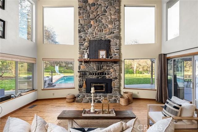 What a beautiful property that takes your breath away. Tucked away in a peaceful setting, this home offers the perfect balance of comfort, nature, and convenience. The spacious layout includes 6 bedrooms, 3 bathrooms, a game room or mother-in-law area, two private office spaces, and a loft area with a bedroom, providing flexible living for guests, work-from-home needs, or multi-generational living. The open floor plan features vaulted ceilings and abundant natural light, creating a warm and welcoming feel. Energy-efficient features include owned solar, a whole house fan, UV-tinted arch windows, and cellular shades designed to help keep the home comfortable year-round. Step outside and experience a property that truly feels like a private family retreat. The land offers space for animals, gardening, and outdoor living, while the beautiful in-ground pool creates the perfect place to cool off during warm summer days. One of the most unique features of this property is the large pond filled with koi fish, creating a peaceful focal point that makes the property feel like your own resort-style getaway. Kids will love exploring the land, watching the fish, and growing up surrounded by nature. Relax and take in the views while listening to the breeze through the trees, birds flying by, and the occasional turkeys passing through. The setting is peaceful, private, and truly breathtaking.All of this is located just 7 minutes from shopping, gas, and Lake Oroville, and about 15 minutes to town, giving you the beauty of country living while staying close to everyday conveniences.