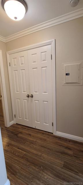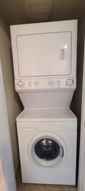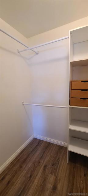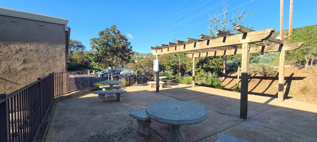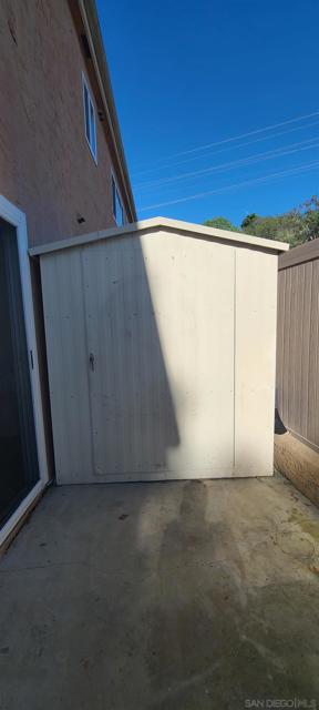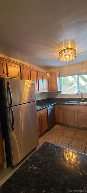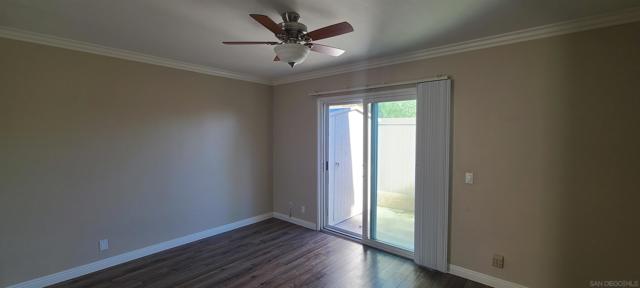 Beautiful single-level 2-bedroom, 1-bath condo for lease offering comfort, convenience, and easy access with no steps. This first-floor end unit provides added privacy with no neighbor on one side and includes two assigned parking spaces directly in front of the unit for effortless daily living. The home features freshly painted interior walls, crown molding throughout, and tile flooring designed to resemble wood, creating a warm and durable living space. The spacious living room offers abundant natural light and a ceiling fan, while both bedrooms also include ceiling fans for added comfort. The main bedroom features a large walk-in closet for excellent storage. The kitchen includes granite countertops, newer shaker-style wood cabinets, and a refrigerator, and a stacked washer and dryer are conveniently located inside a dedicated closet. Enjoy outdoor living with a large private patio off one bedroom with an enclosed storage shed. Just steps away is a beautiful park-like community area with covered patio seating and tables surrounded by mature trees, providing a peaceful space to relax. Ideally located with quick access to Interstate 15 and State Route 52, the home is also within close proximity to the beach, making it easy to enjoy San Diego’s coastal lifestyle. With single-level living, indoor laundry, private outdoor space, and convenient parking, this home offers a fantastic leasing opportunity.
