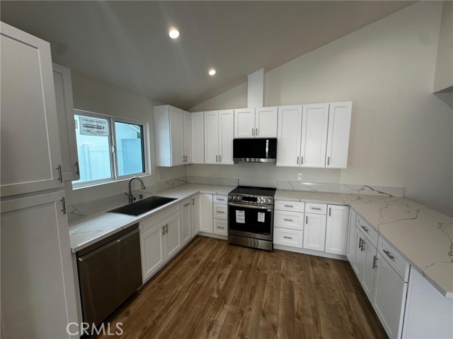 For Lease – Brand New 2025 Construction with Solar Be the first to live in this brand-new 2025 built 3-bedroom, 2.5-bath home offering approximately 1,240 sq. ft. of bright, open living space on a quiet residential street in Van Nuys. Designed with comfort and efficiency in mind, the home features high ceilings, recessed lighting, modern fixtures, and an open layout filled with natural light. The home is equipped with brand new appliances, mirrored closet doors in bedrooms, central HVAC, in-unit washer and dryer, tankless water heater, and newly installed solar panels, helping significantly reduce monthly electric costs. Additional highlights include wide 36-inch doorways and single-level living with no stairs, providing convenient accessibility in case there are special tenant needs. Enjoy private front and side yard areas along with gated parking for added security and convenience. The property itself offers a versatile layout with three separate homes on one lot, each private and divided by new white vinyl fencing. The two rear homes are brand-new 2025 construction (duplex), while the front home has been newly renovated, creating multiple housing options on the property. Flexible property layout may be ideal for extended families, multi-generational living, or care-related housing due to the accessible design and separate residences. Conveniently located near shopping, dining, and major commuter routes, yet tucked away on a peaceful residential street with ample street parking. Available now. Easy to show and apply.